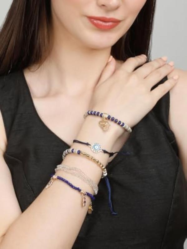This beautiful evil eye bracelet is believed to offer protection and bring good luck. A stylish accessory with symbolic meaning.