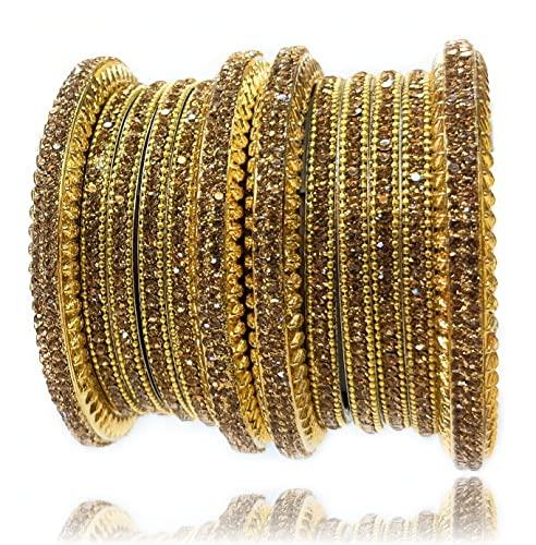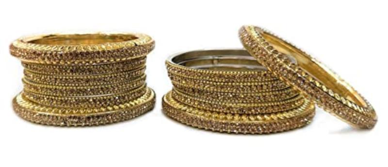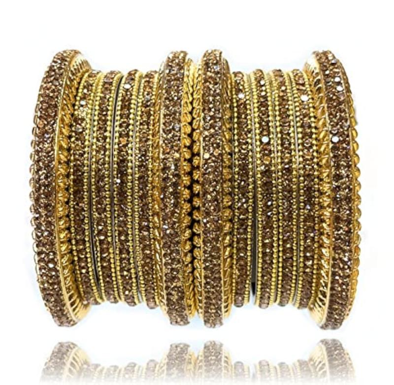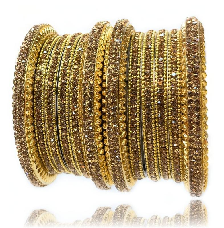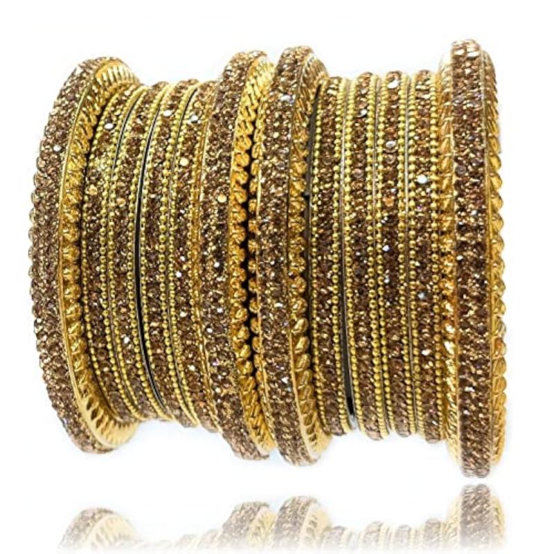 This stunning bangle set features intricate brass work with sparkling cubic zirconia stones, perfect for bridal occasions and all types of celebrations.