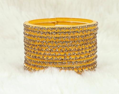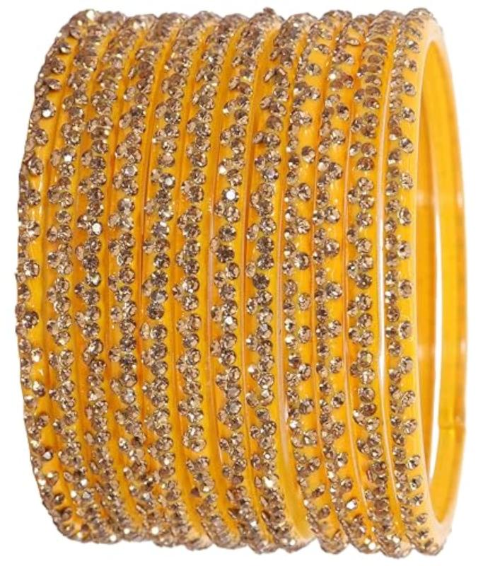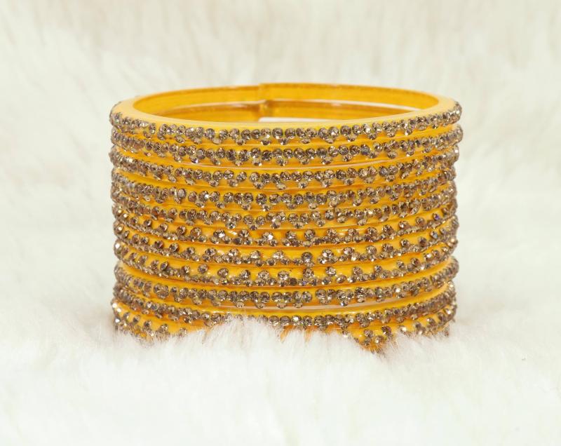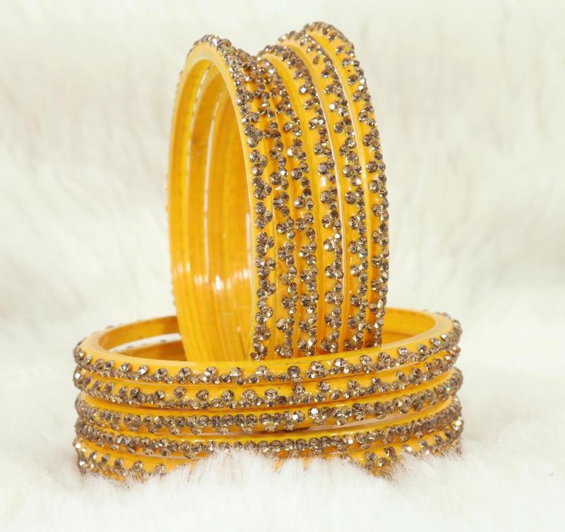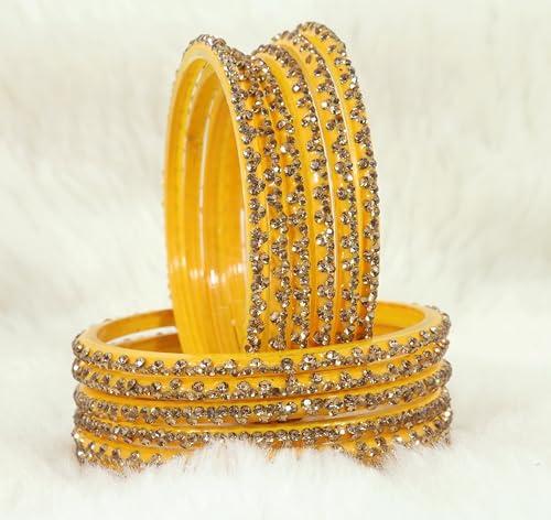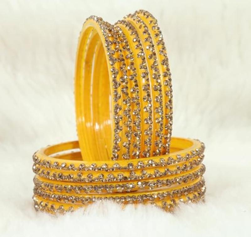 Enhance your ethnic look with this stylish Glass Bangle Set featuring intricate stone work. Available in sizes 2.4, 2.6, and 2.8.