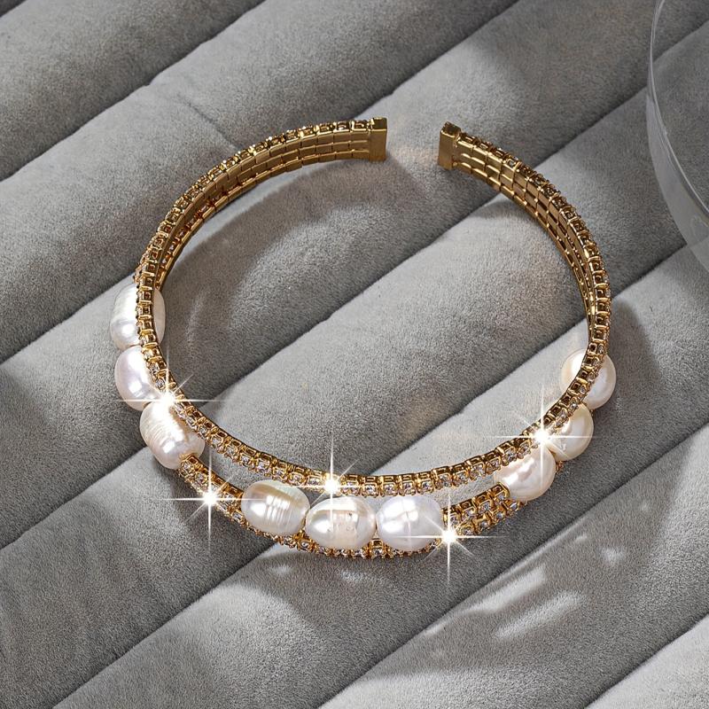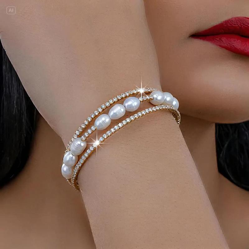 Faux Pearl And Rhinestone Stretch Bracelet for Women