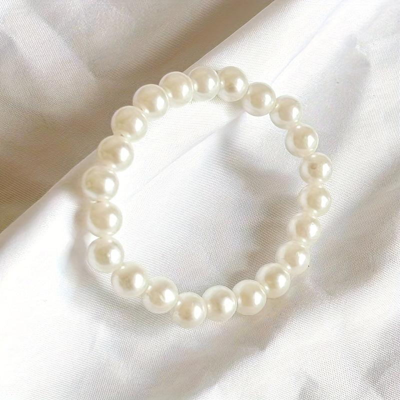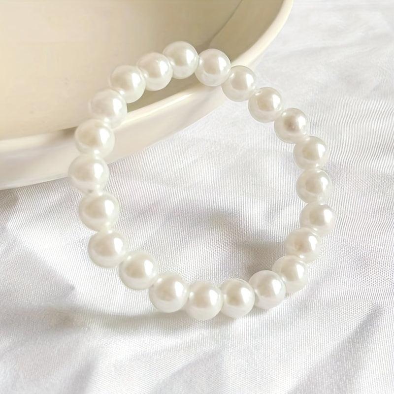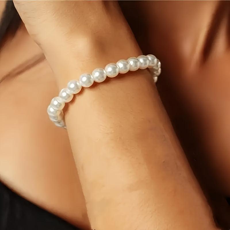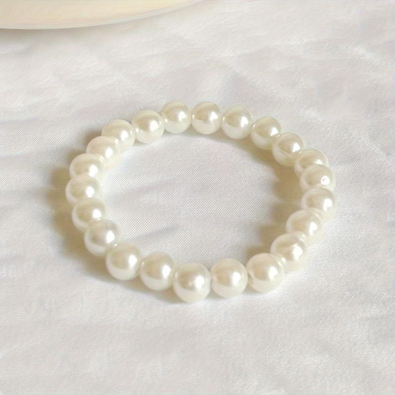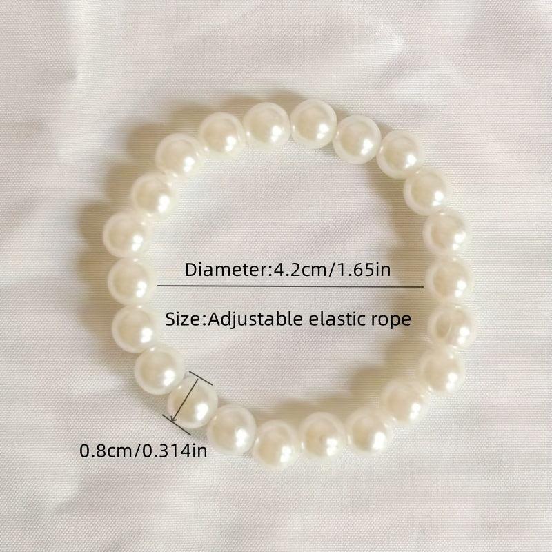 Add a touch of elegance to your outfit with this faux pearls beaded bracelet. It is adjustable and made of elastic rope for a comfortable fit. Perfect hand jewelry accessory.