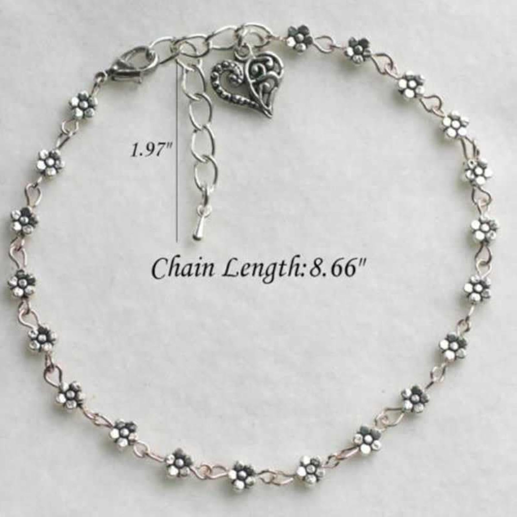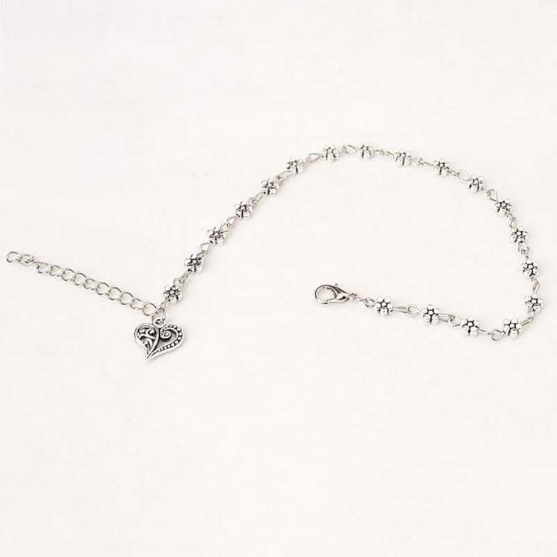 Enhance your ankle with this beautiful floral oxidized heart shaped anklet featuring a charming design. Perfect to wear alone or layer with other anklets for a stylish look.