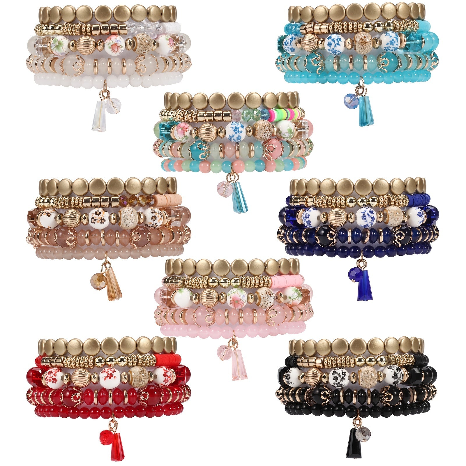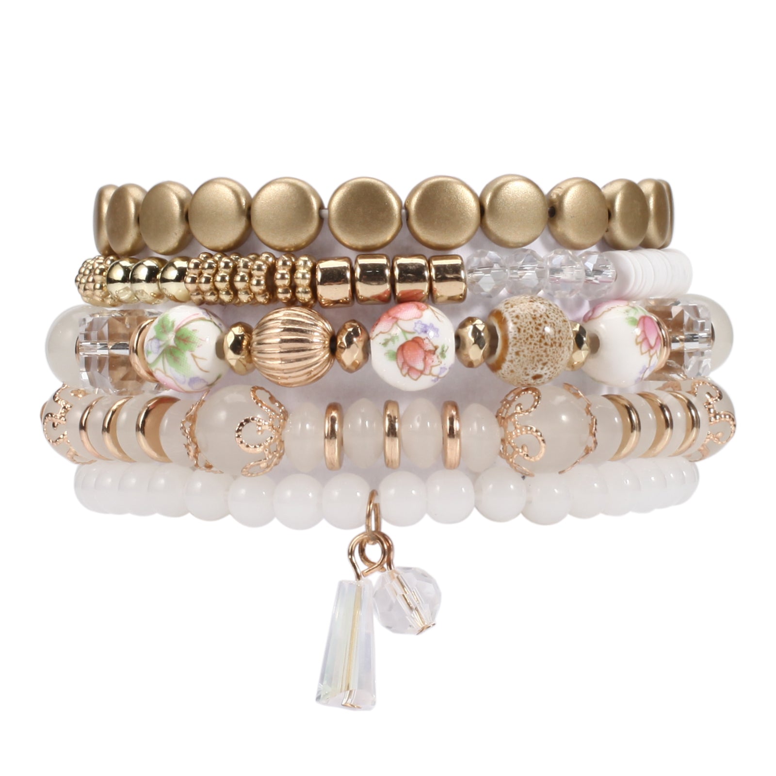 Flower Pattern Multilayer Bracelet Glass Pendant Beaded Strand