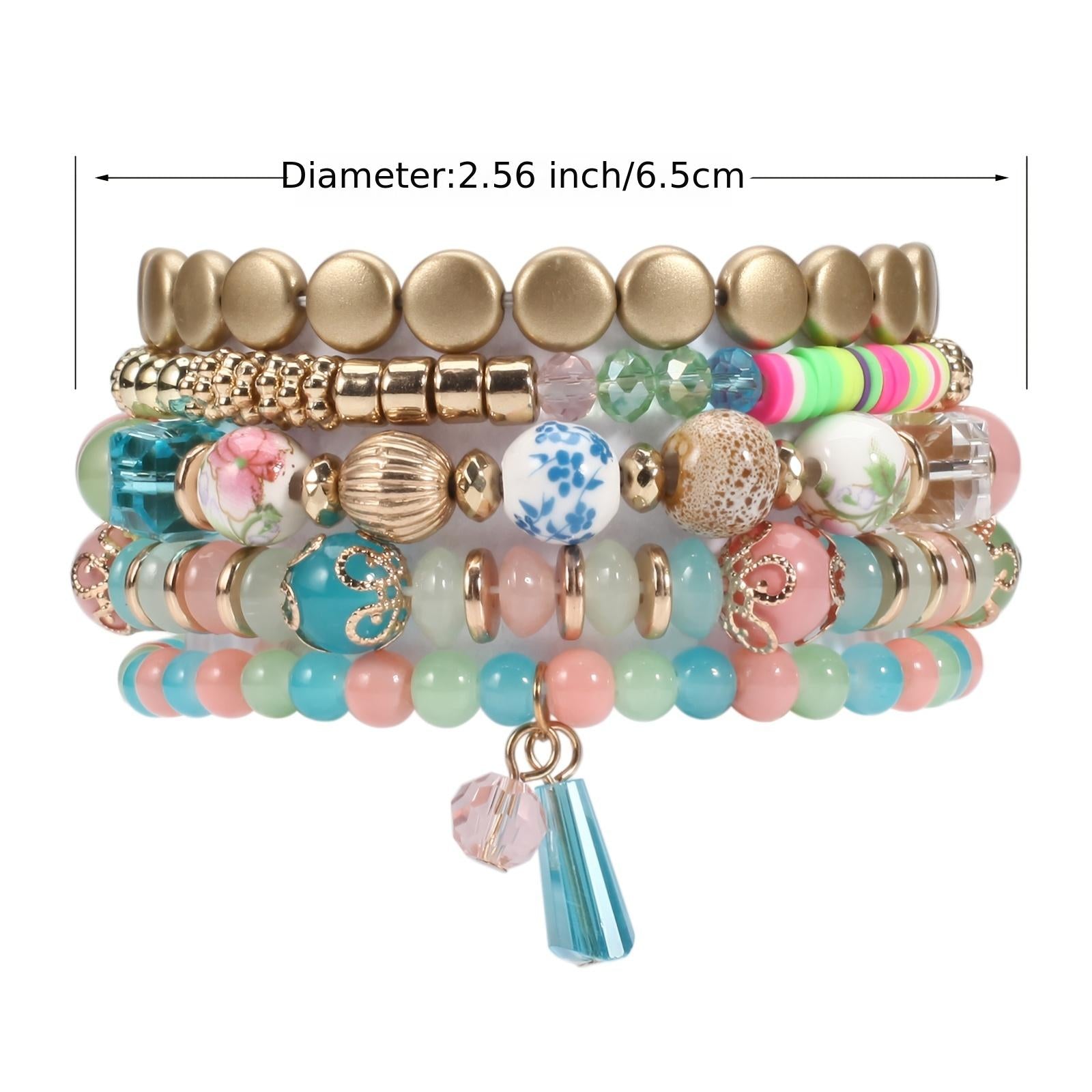 This bracelet features a beautiful flower pattern with a glass pendant on a beaded strand. It is stretchable and hand-crafted for a unique look.