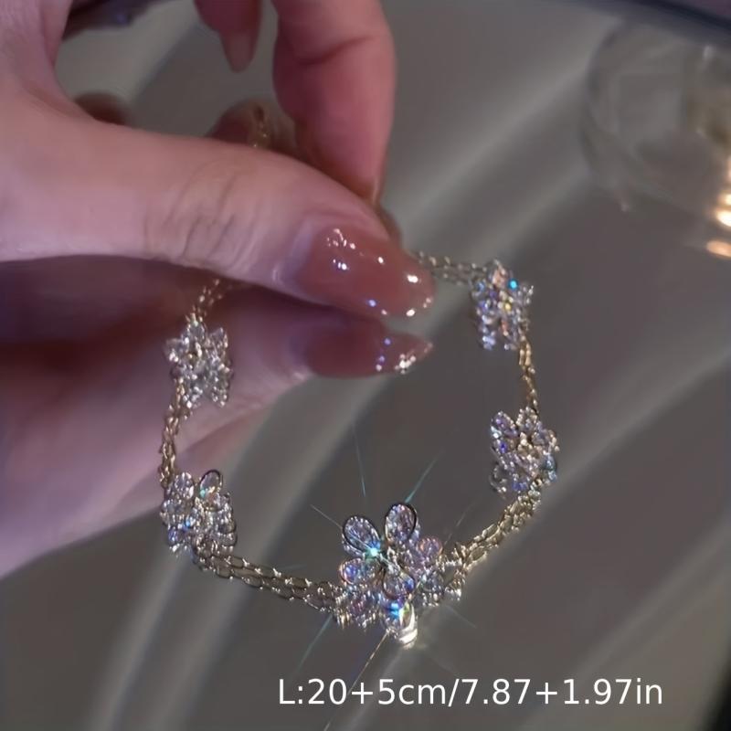 Elevate your style with this stunning flower zirconia bracelet featuring crystal floral design. Perfect hand decoration for any occasion.