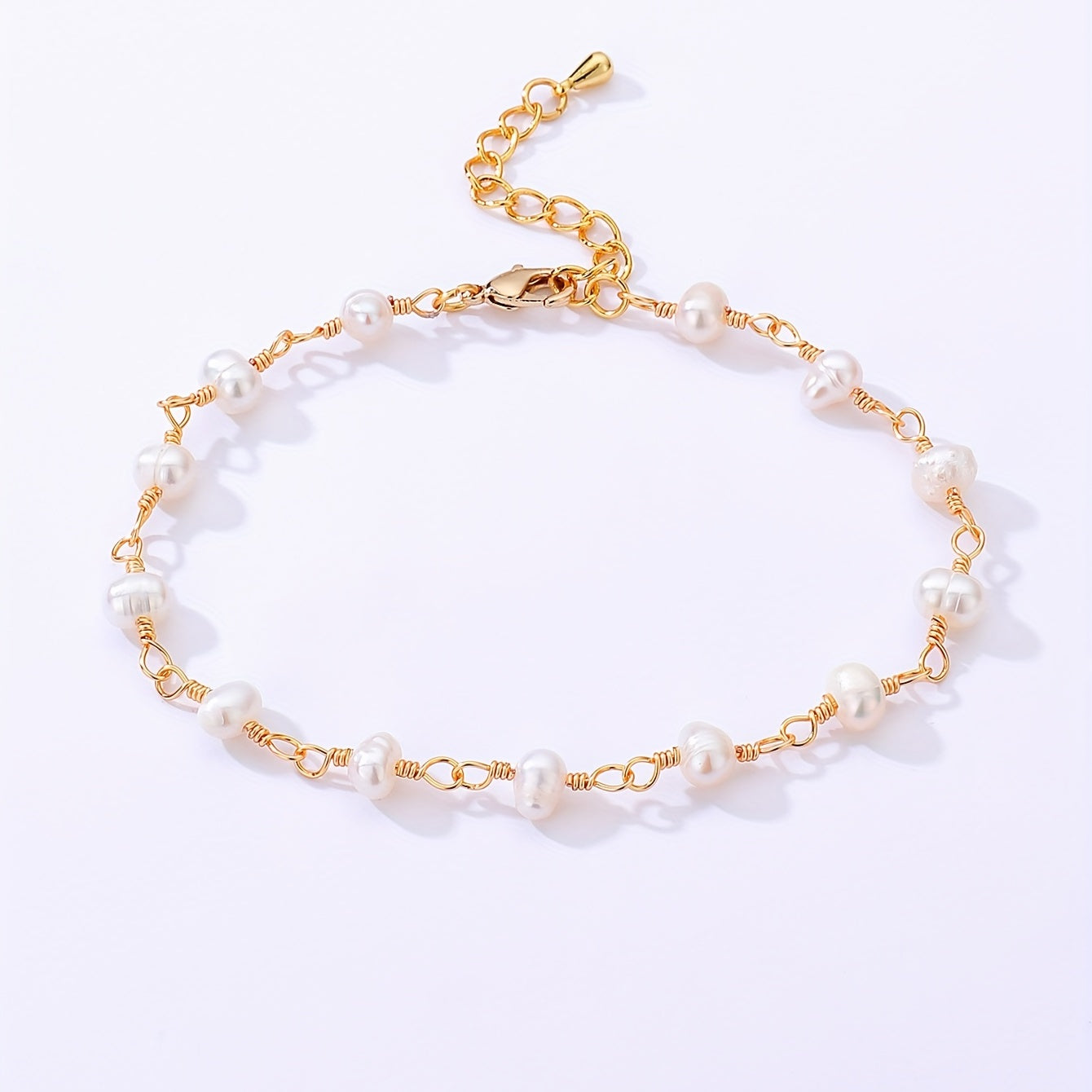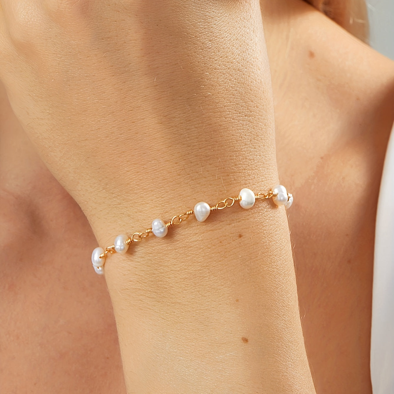 Elegant freshwater pearl bracelet with 18K gold plating, a perfect gift for any occasion.