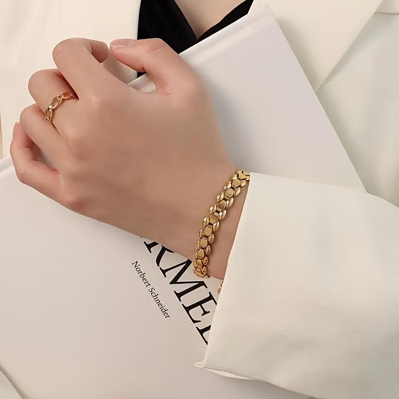 This geometric iron chain bracelet is a versatile accessory that can be worn daily or for parties. It makes an ideal gift for Valentine's, birthdays, or any occasion. This all-season jewelry piece adds a touch of elegance to any outfit.