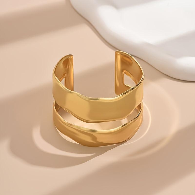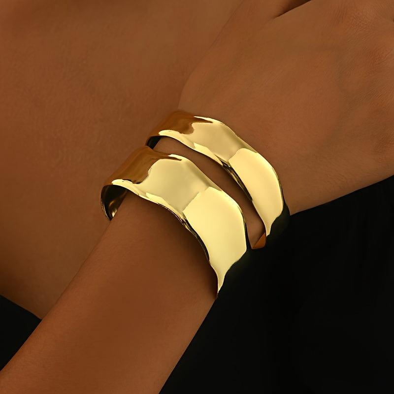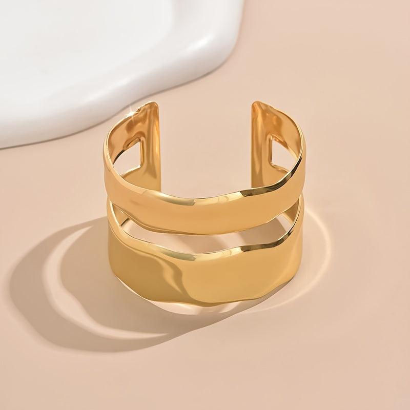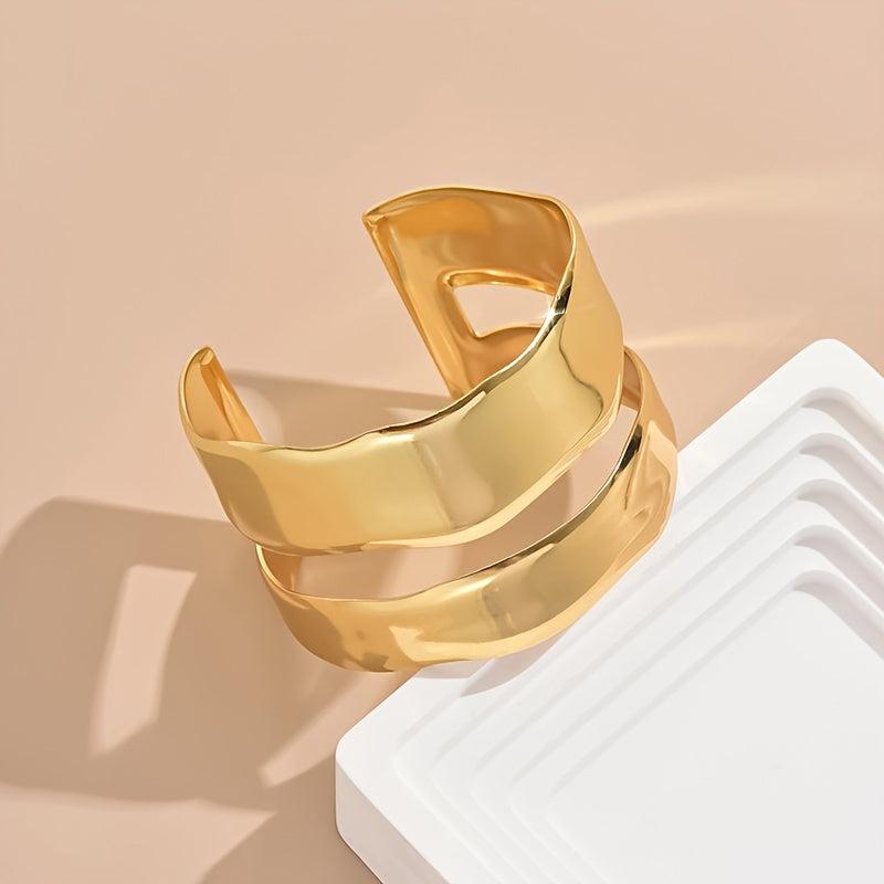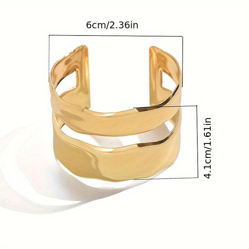 This geometric cuff bangle is a sexy and stylish accessory that features a wide hollow out design. Made of iron with non-mosaic plating, it's perfect for daily wear or to add a touch of glamour to your party outfit.