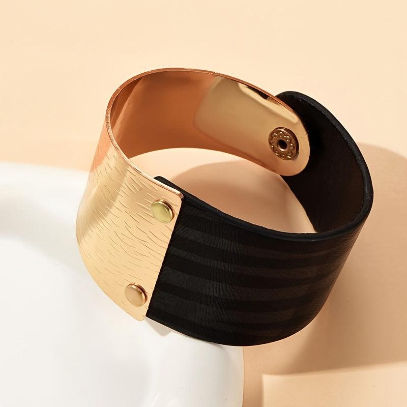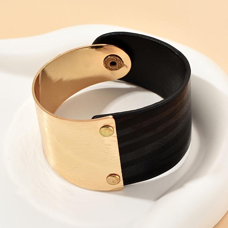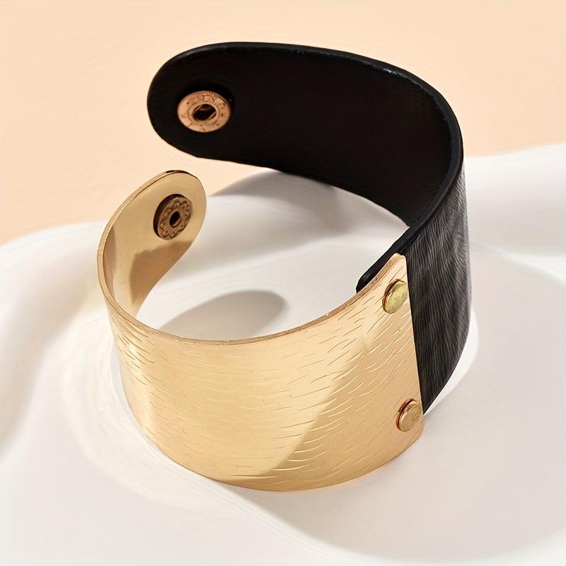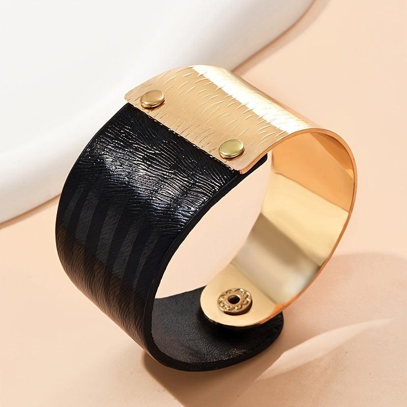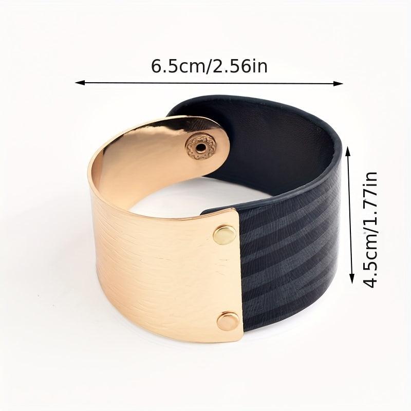 Make a bold statement with this exaggerated geometric cuff bracelet made of high-quality PU leather. Perfect for adding a touch of personality to your outfit.