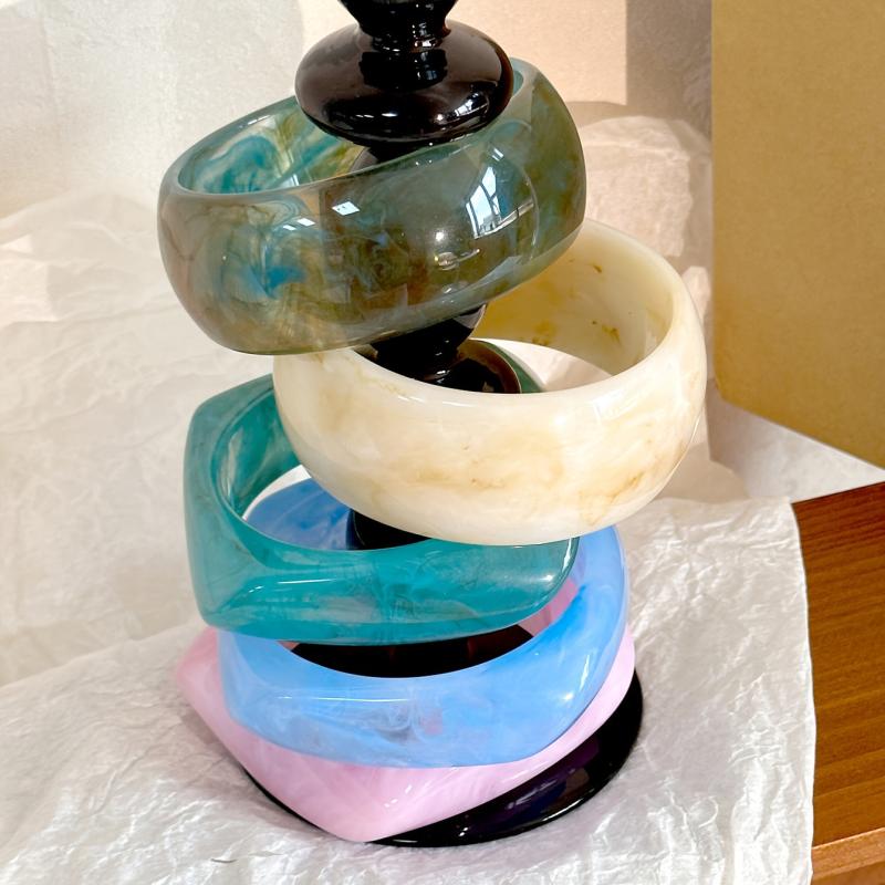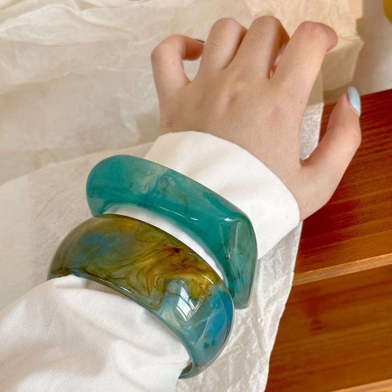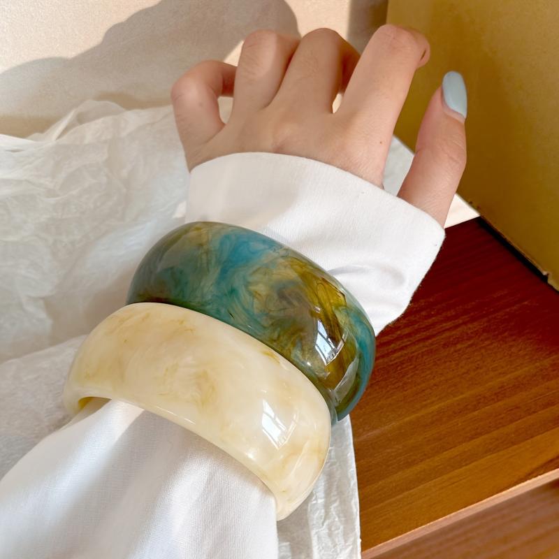 Elevate your style with this vintage-inspired bangle bracelet made of high-quality resin. Perfect for both casual attire and parties.