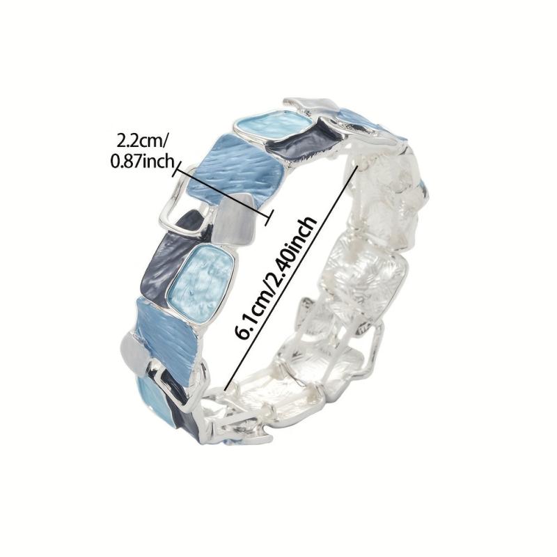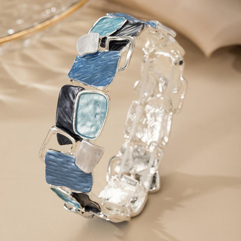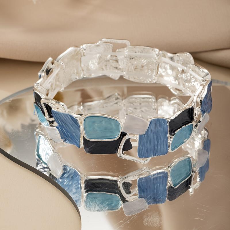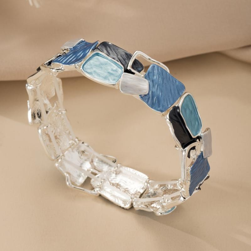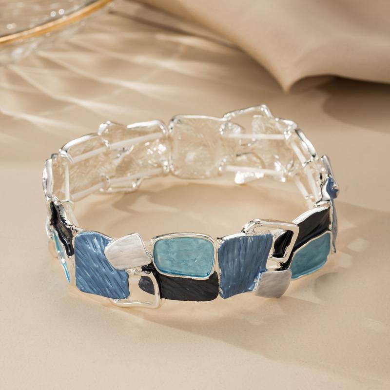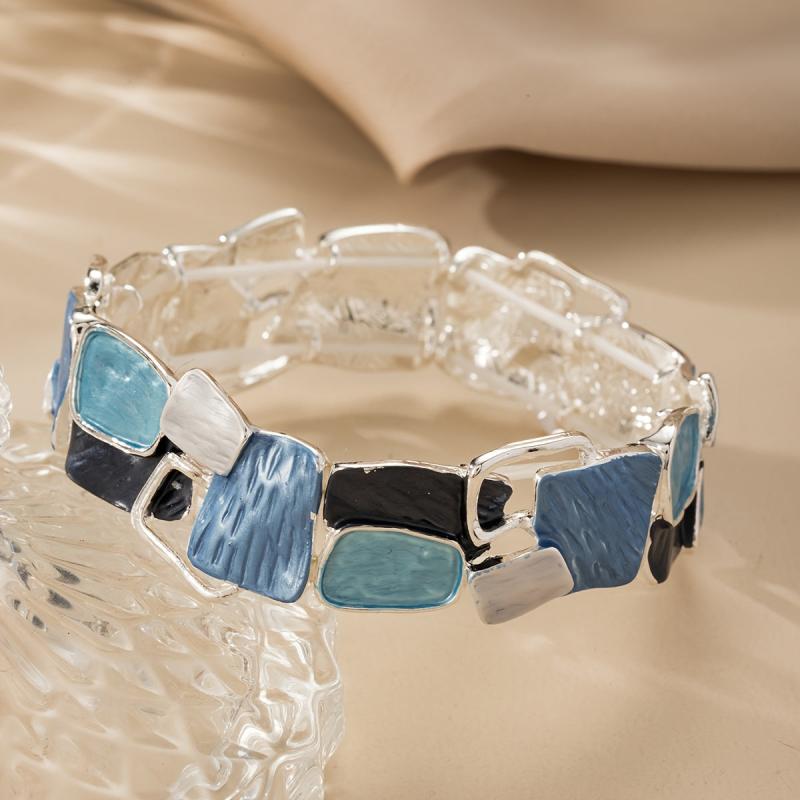 Elevate your look with this high-end ocean-inspired bracelet. This stretch bracelet features a geometric square design with enamel drip detail. Perfect for daily wear and beach vacations.