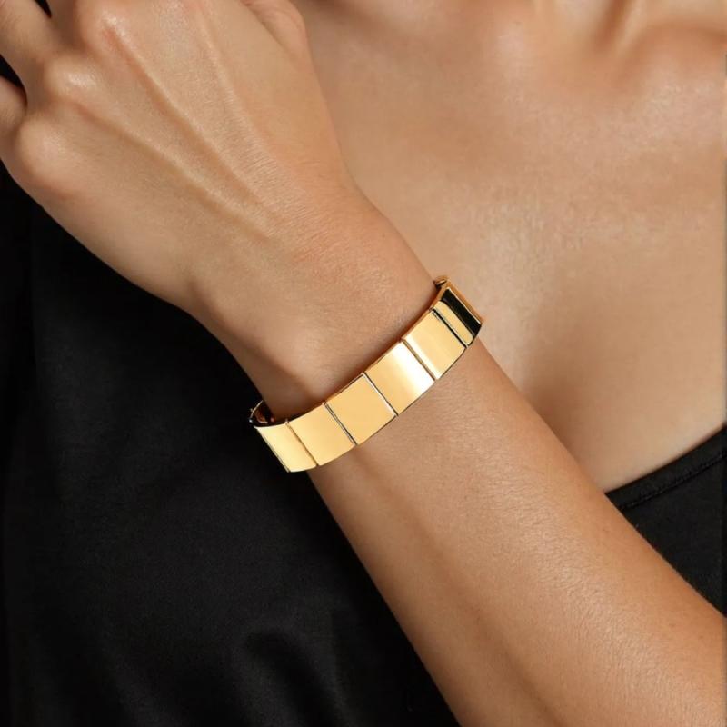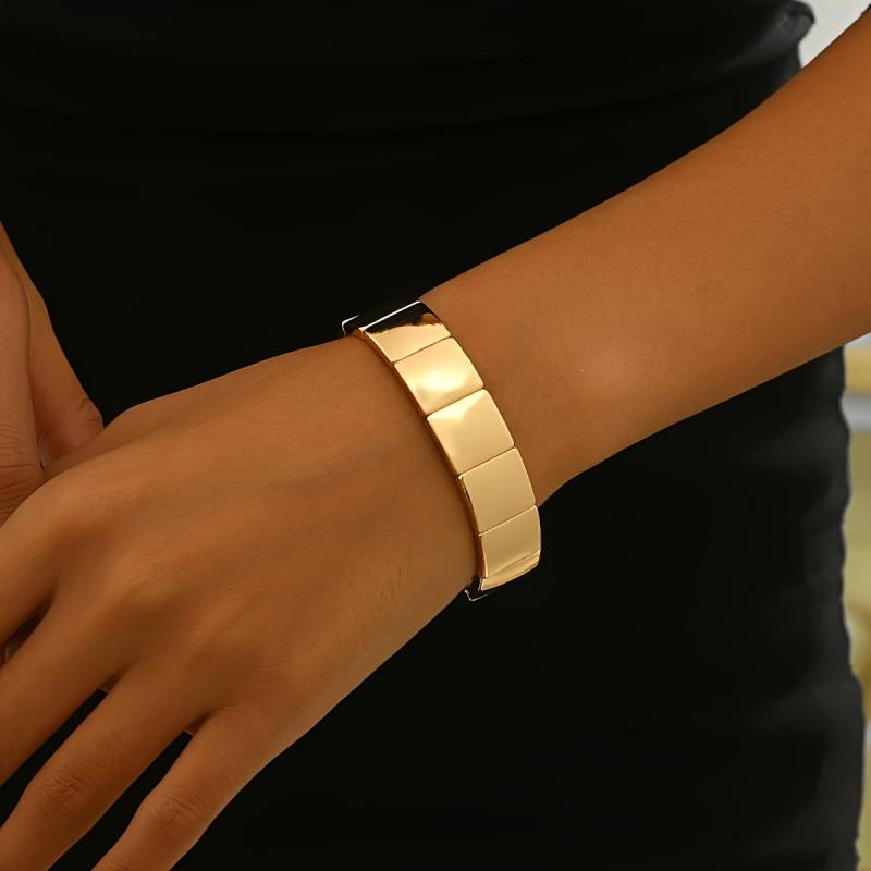Elevate your style with this minimalist and modern geometric square stretch bracelet. Perfect for casual attire, parties, and vacations, this durable piece of versatile jewelry adds a touch of elegance to any outfit.
