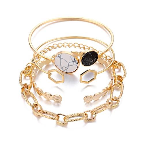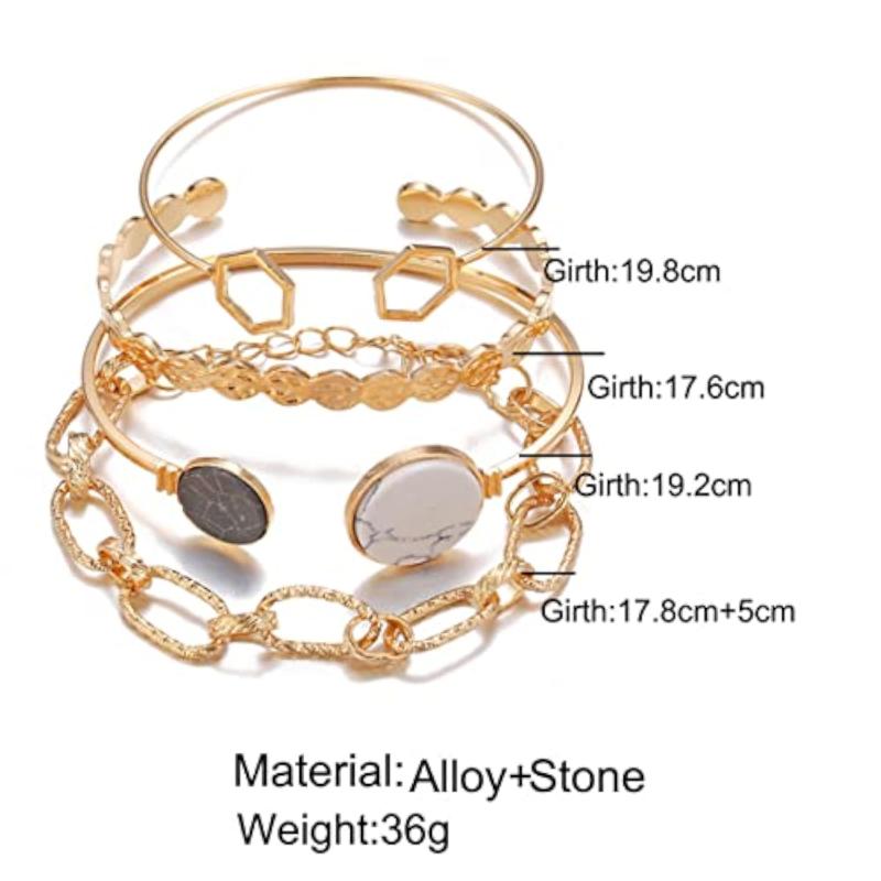 Elevate your style with this plated geometric bracelet set featuring 4 stackable pieces.