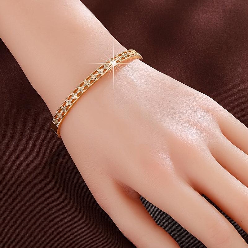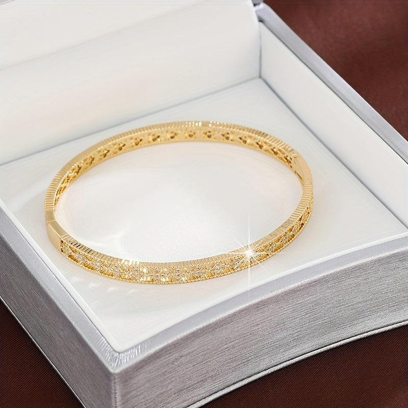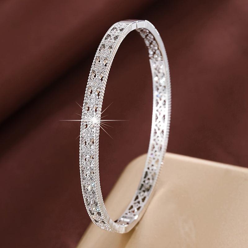 Enhance your style with this stunning hollow geometric bracelet featuring inlaid zirconia for a touch of elegance.