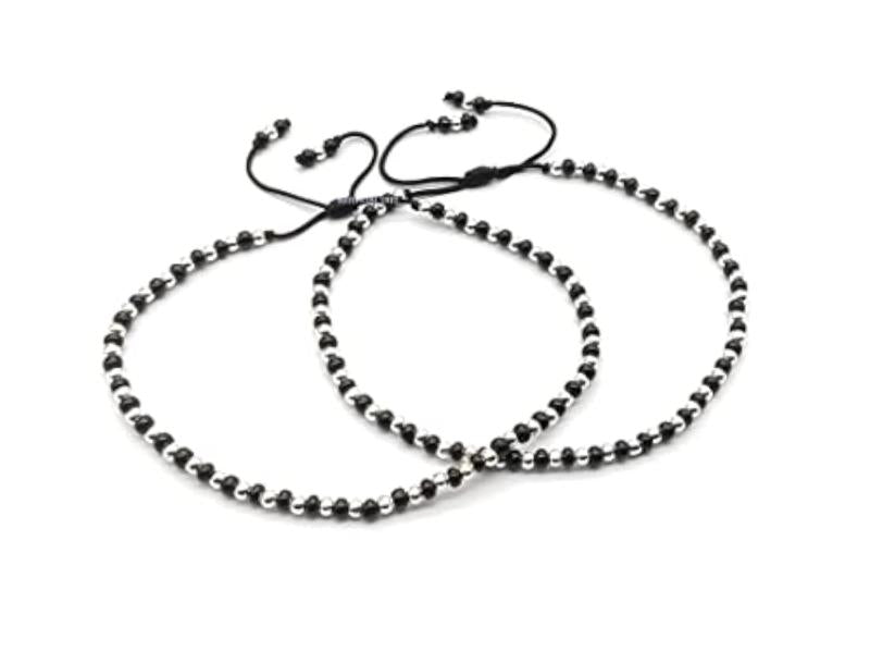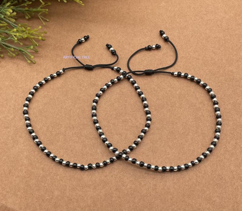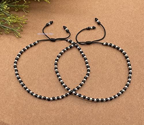 These adjustable thread anklets feature evil eye charms made of German silver. They are perfect for protection and style.
