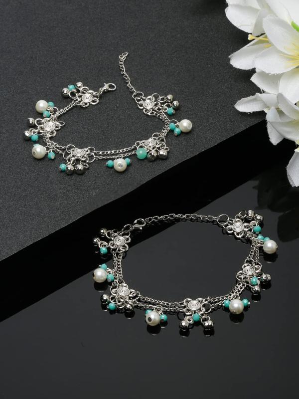 Elevate your style with these stylish German silver plated anklets designed for women.