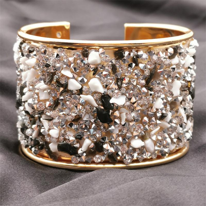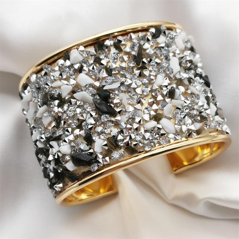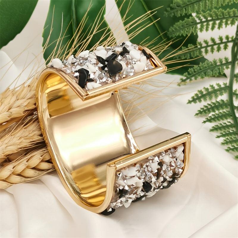 Add a touch of glamour with this elegant cuff bangle bracelet featuring rhinestone inlay. Adjustable to fit comfortably and designed to sparkle your style.