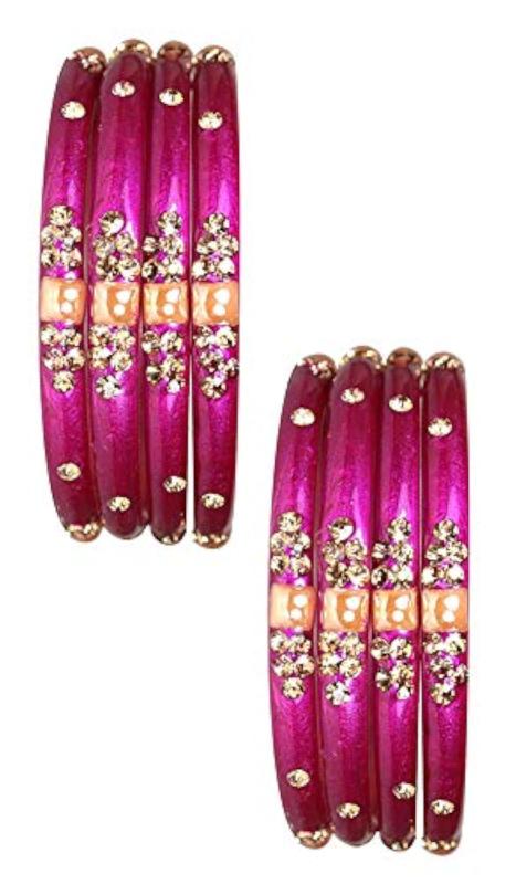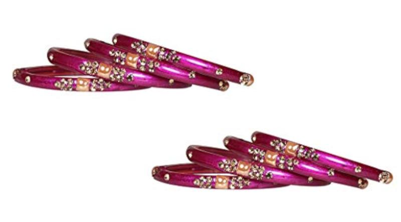 This pack of 8 kadas features glass with zircon gemstone studded design. The glossy finish adds a touch of elegance, making it perfect for women and girls. Each kada has a diameter of 2.4 inches.