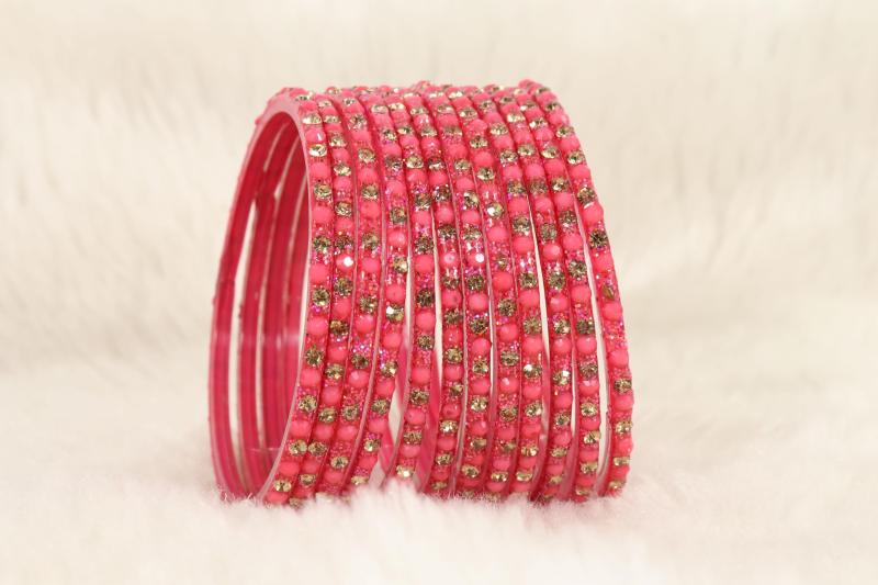 • Stylish glass bangles with zircon stone set