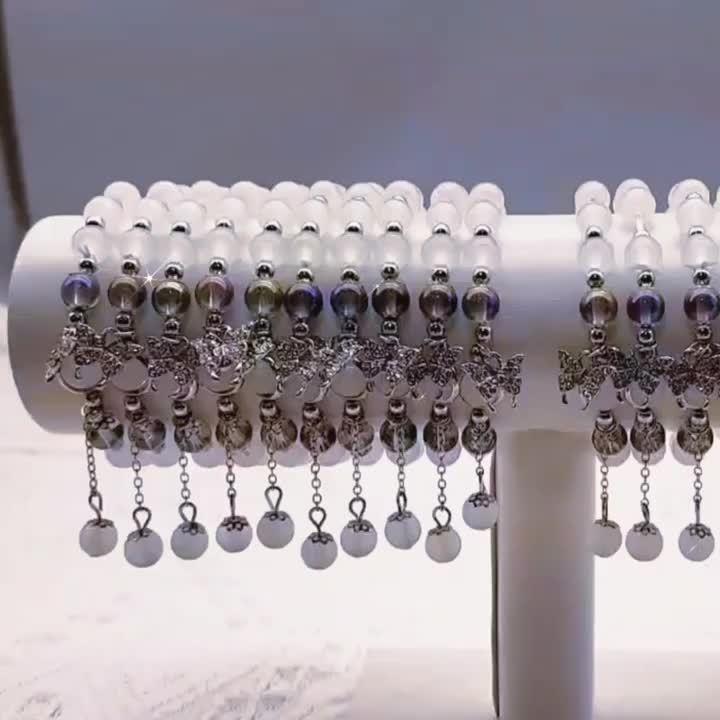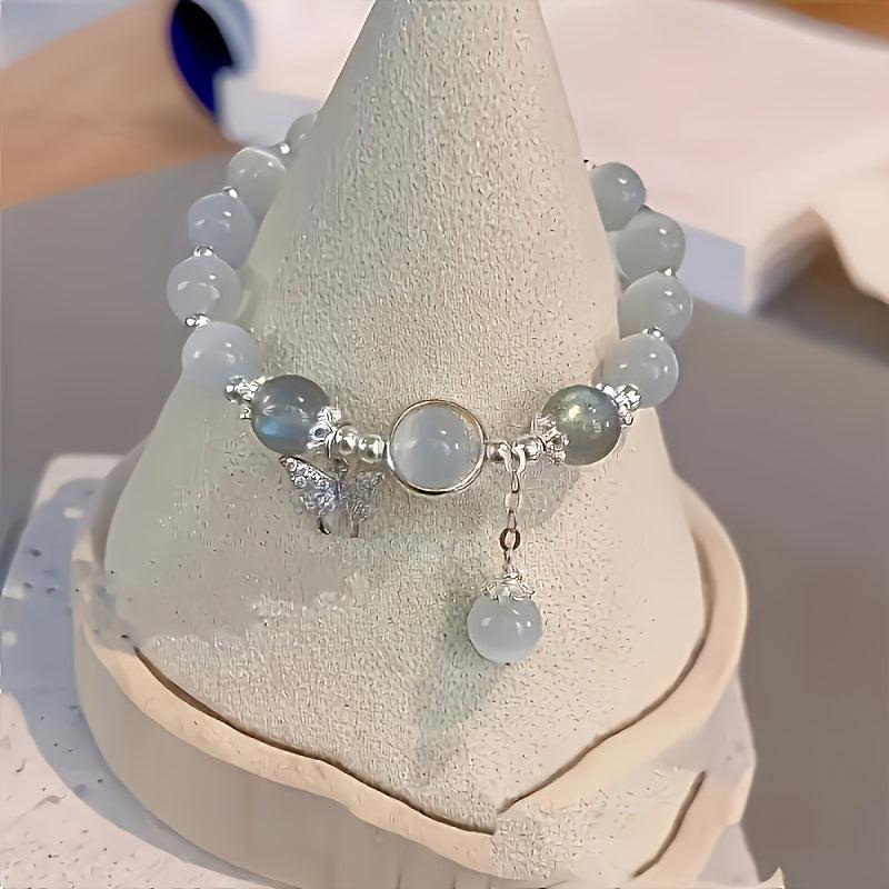 This beautiful bracelet features glass cat's eye beads and a delicate butterfly charm. It makes the perfect gift for women who appreciate unique and elegant jewelry.
