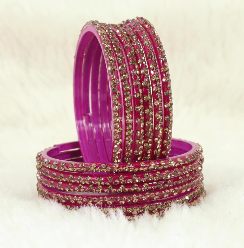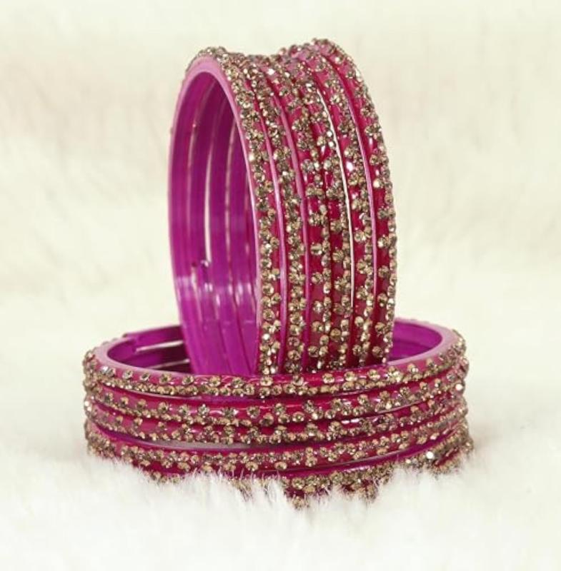 Elegant glass bangle set featuring beautiful stone work. Perfect for women who appreciate stylish accessories.