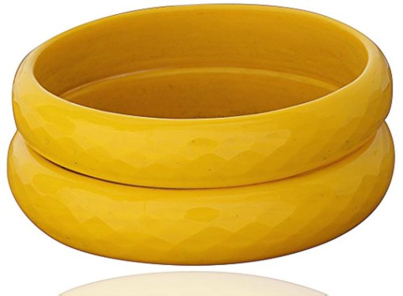 Elegant pack of 2 bangles with diamond cutting pattern for a stylish look. Made of high-quality glass material with glossy opaque finish. Perfect accessory for women and girls.
