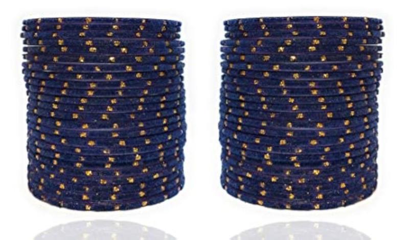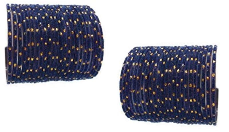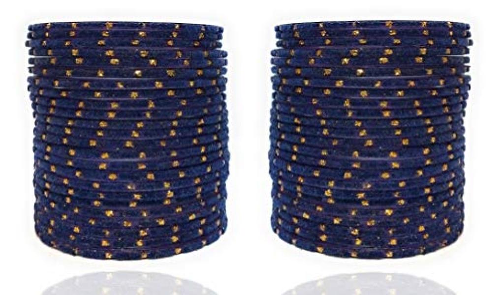 Elegant bangle set made of glass and fabric, perfect for any occasion. Set includes 48 bangles in chic black color.