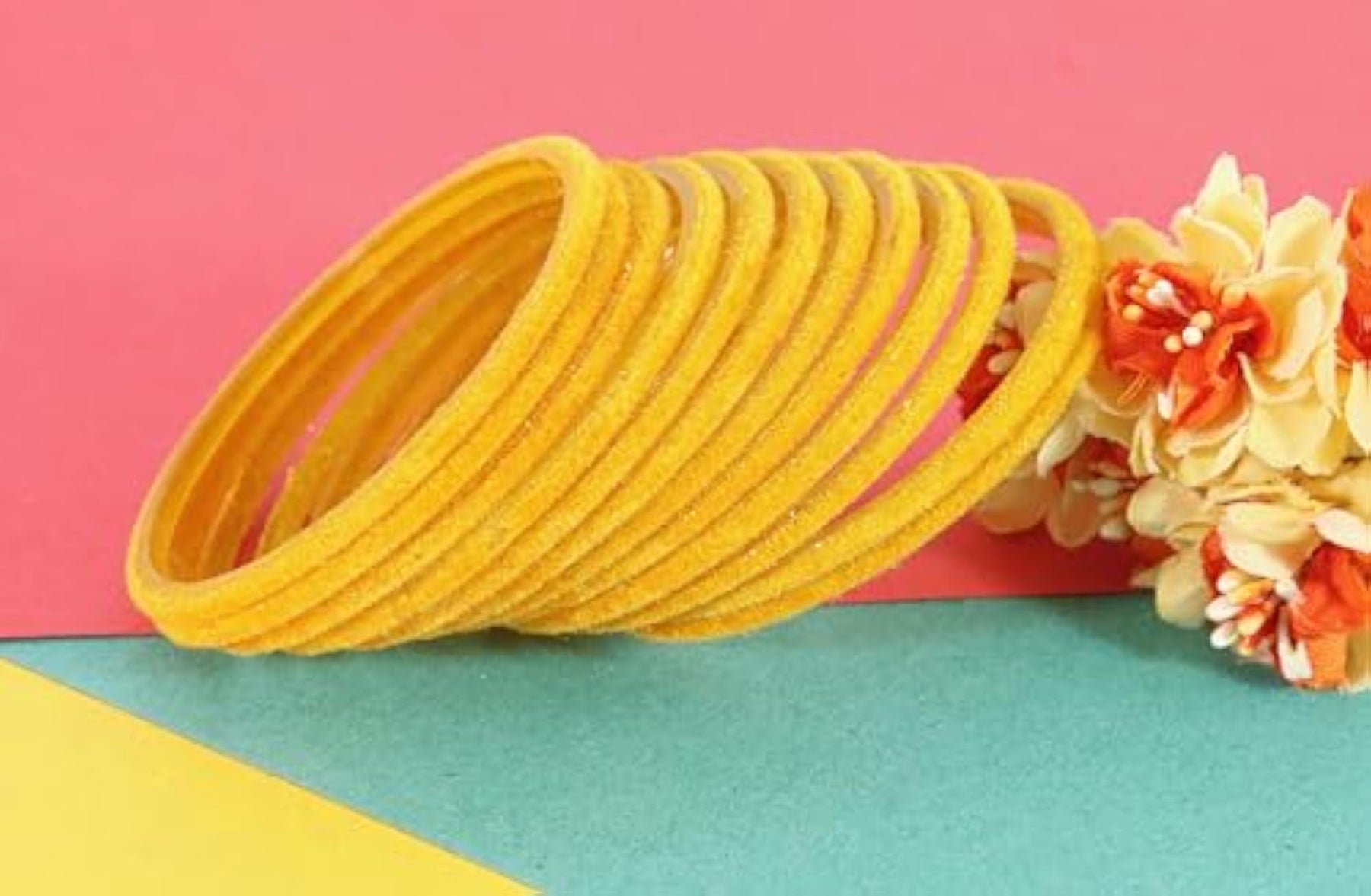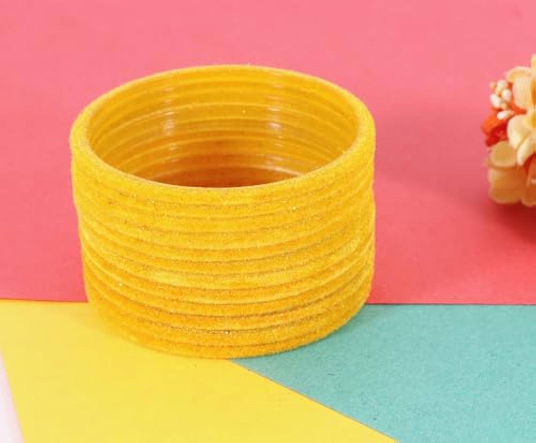 This set includes 24 glass velvet bangles in a stylish and elegant design. Perfect for adding a touch of glamour to your outfit.