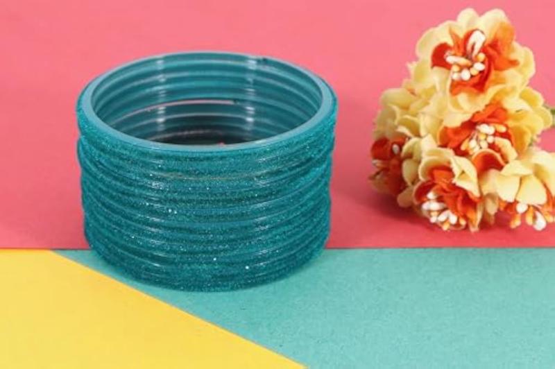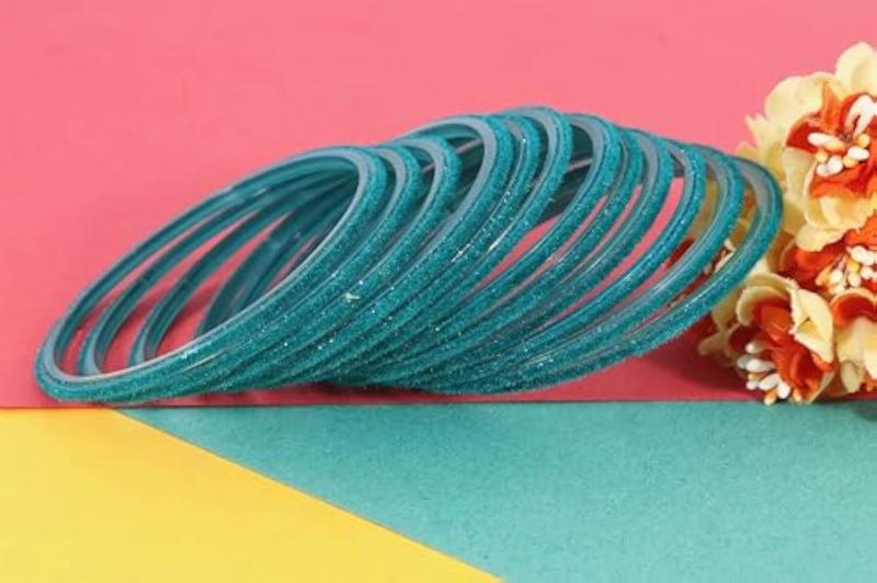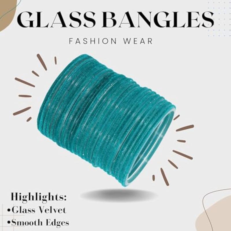 Elegant set of 24 glass velvet bangles in stylish design. Perfect for any occasion.
