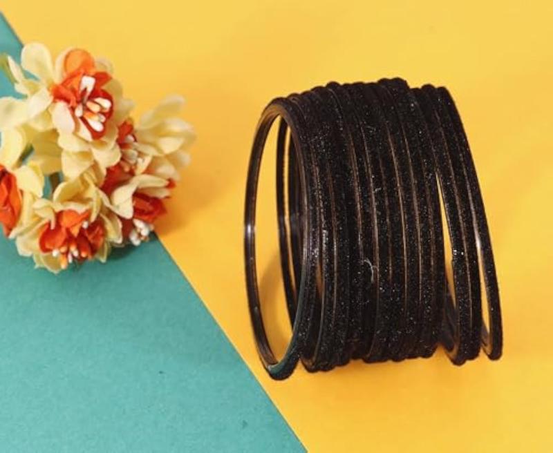 Elegant set of 24 glass velvet bangles with a stylish design. Perfect for adding a touch of sophistication to your outfit.