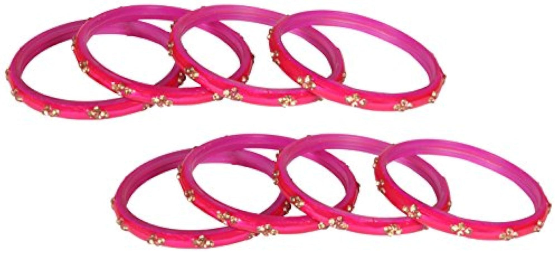Elegant set of 8 kadas featuring glass and zircon gemstones with glossy finish. Perfect for women and girls to add a touch of glamour to any outfit.