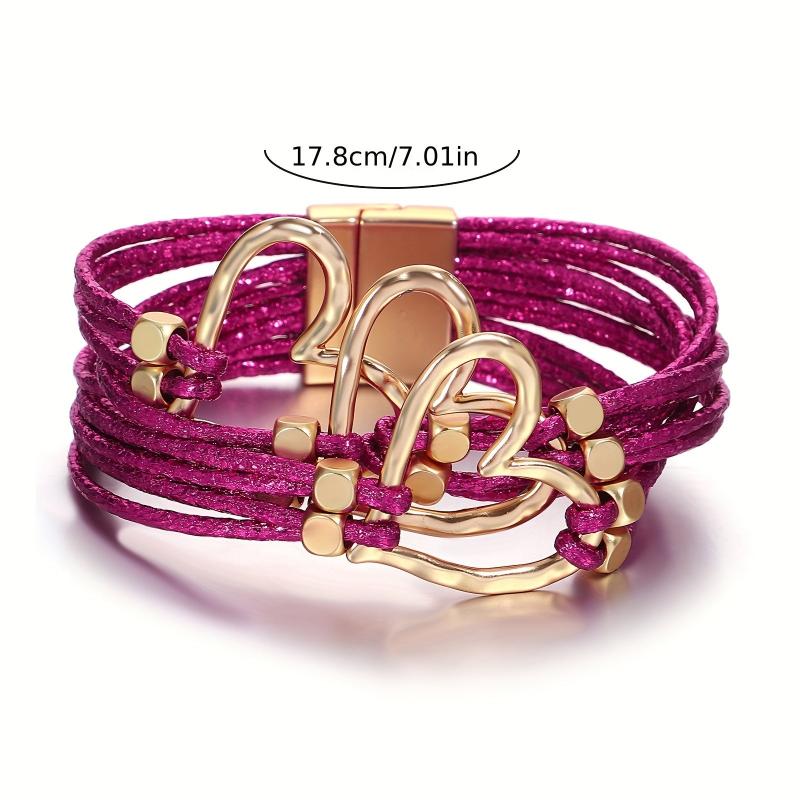 Sparkle with this glitter accented heart charm faux leather wrap bracelet. Versatile for daily wear and gift giving. Perfect accessory!
