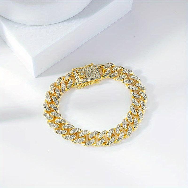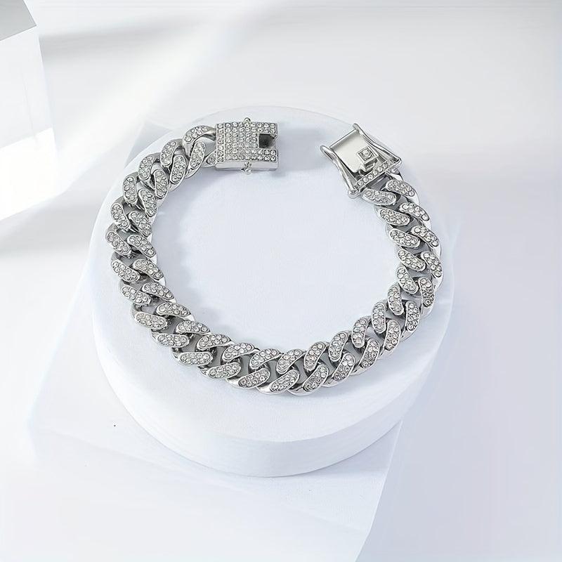 Shine bright with this exaggerated hip hop chain bracelet adorned with glittering rhinestones. Perfect for both women and men.