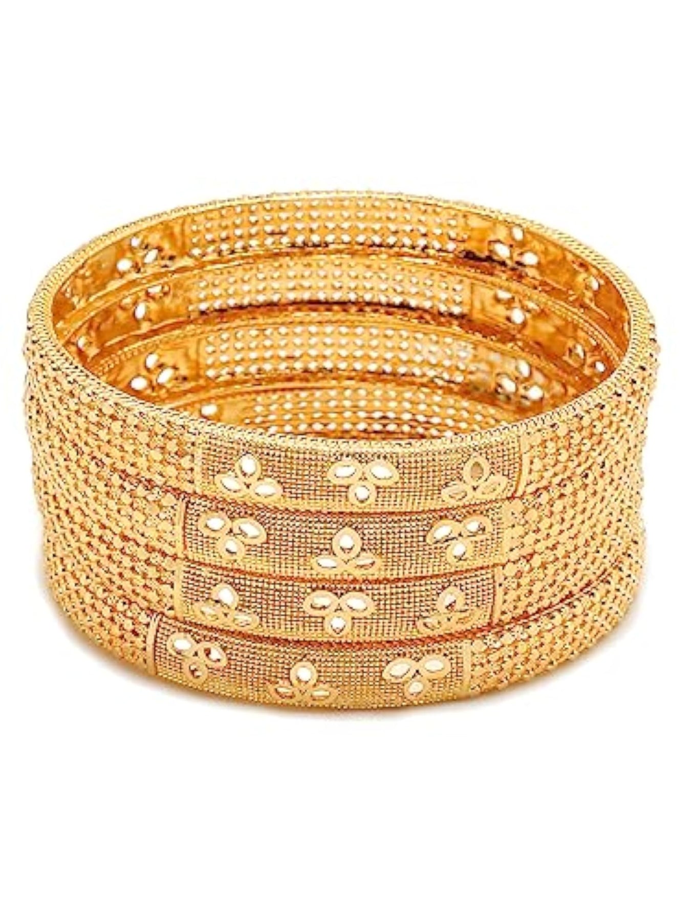 Elegant set of gold-plated bangles with a diameter of 2.8 inches.