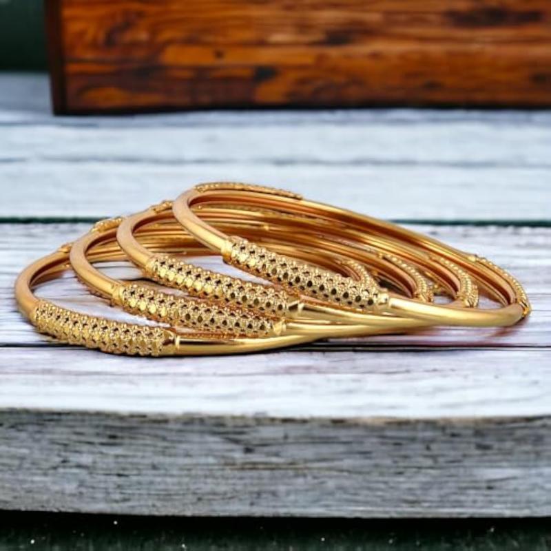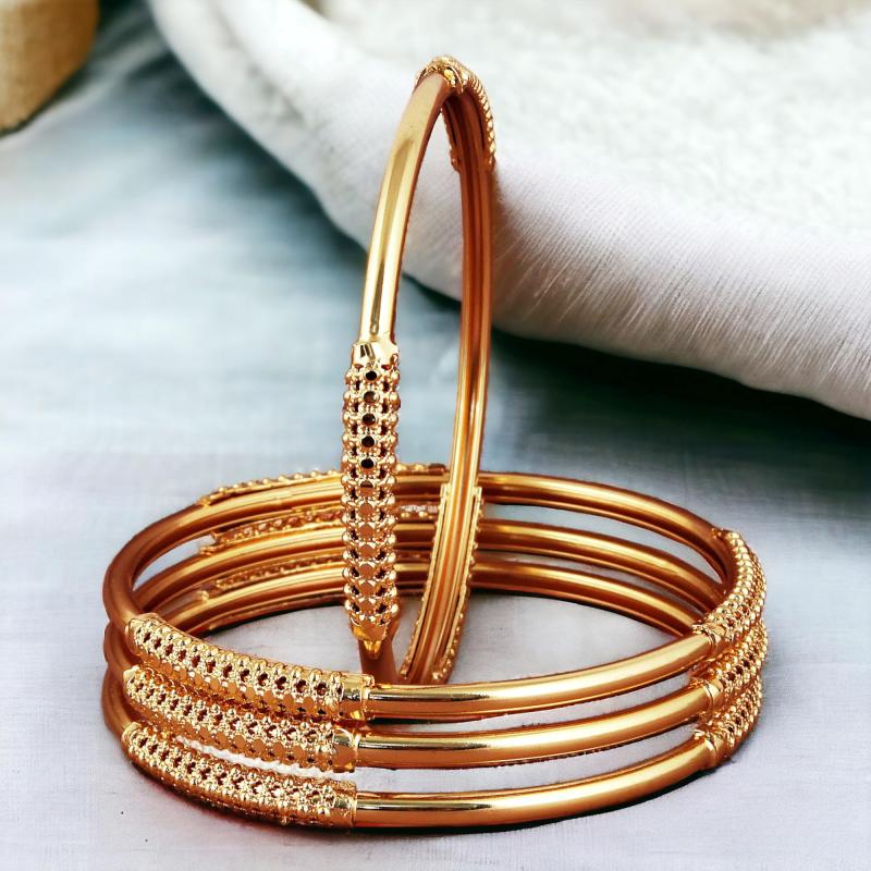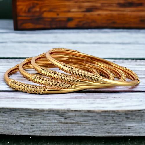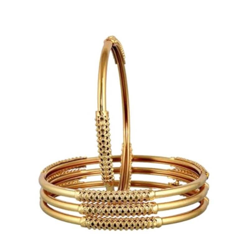 Add a touch of traditional elegance to your outfit with this set of 4 gold plated bangles. Perfect for ethnic occasions.