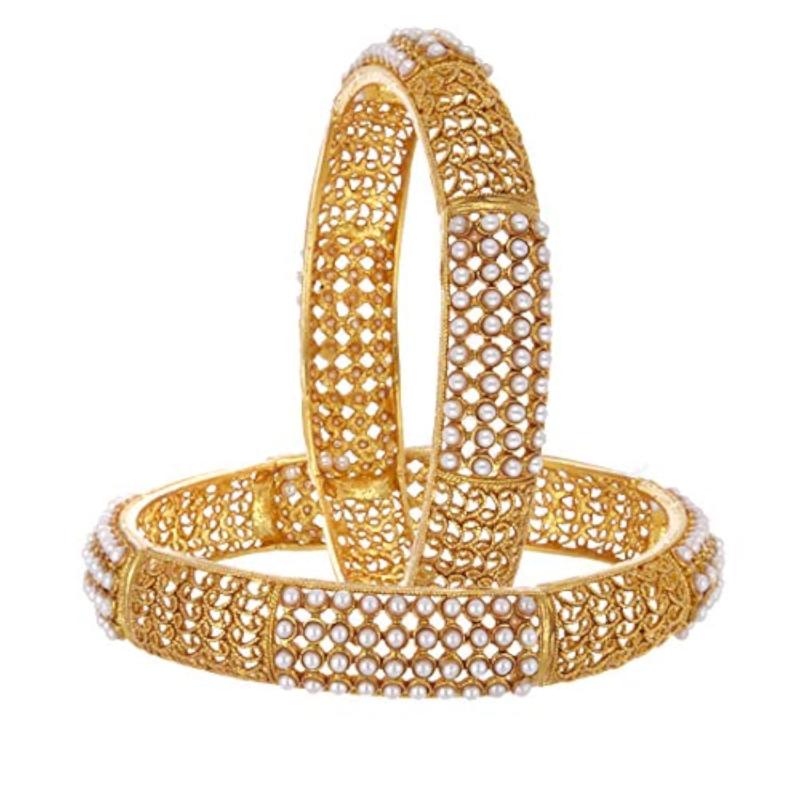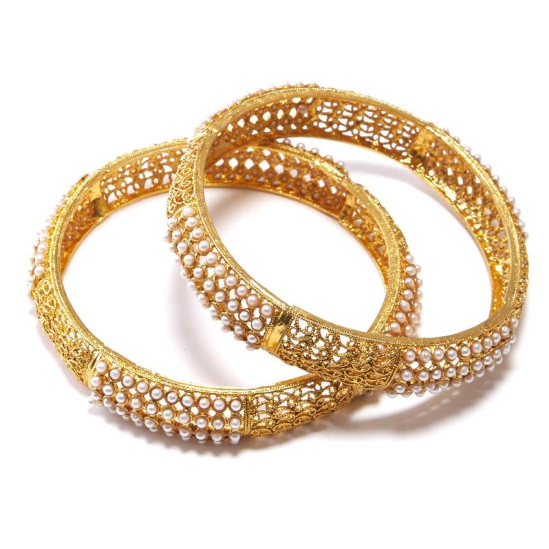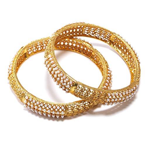 Enhance your attire with this set of 2 stunning gold-plated bangles featuring pota stone studding.