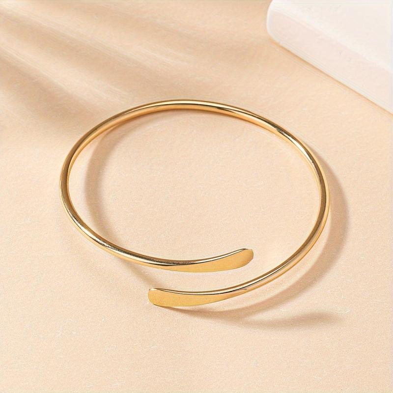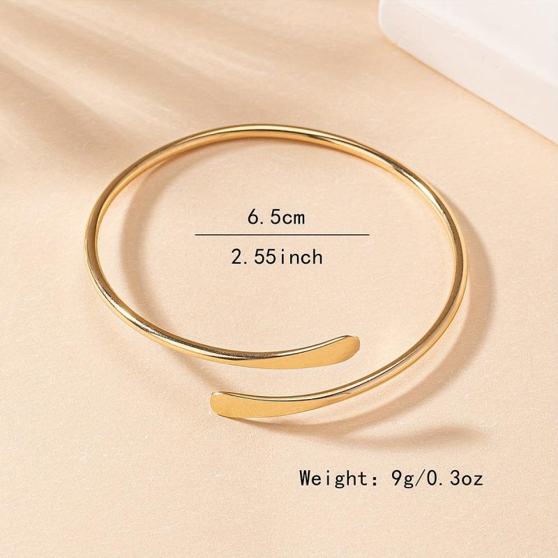 Elevate your look with this golden open bangle bracelet. Perfect for daily commute and casual wear, this delicate accessory adds a touch of elegance to any outfit.