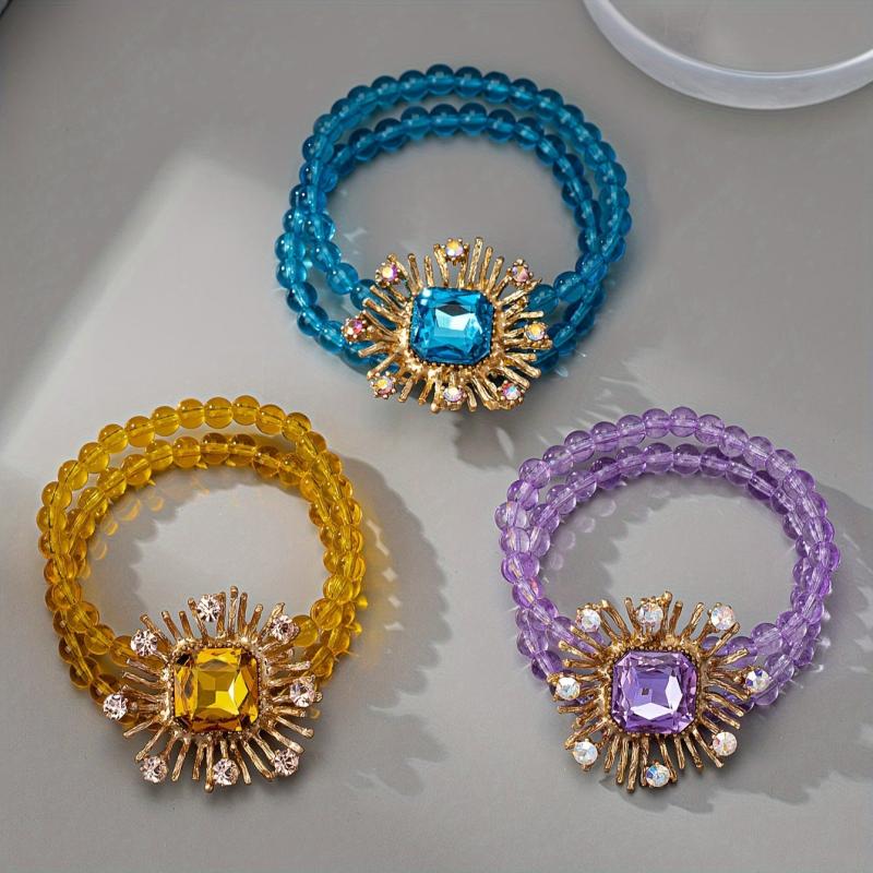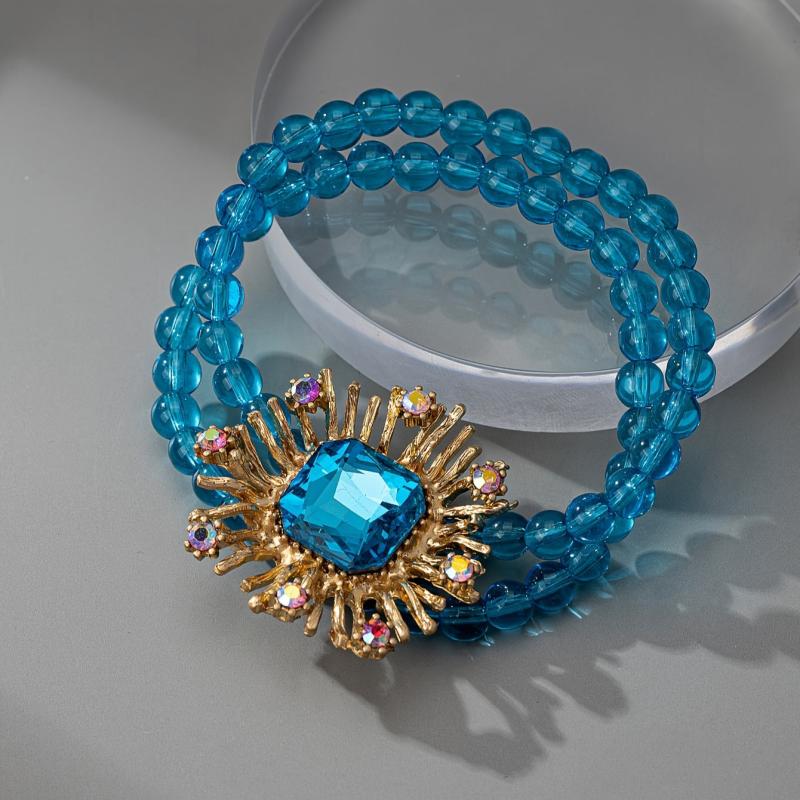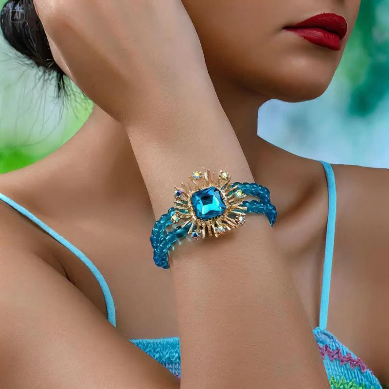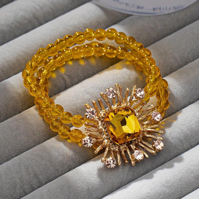 Elegant and dazzling flower bracelet with golden finish and rhinestones, perfect for daily wear, parties, and weddings.