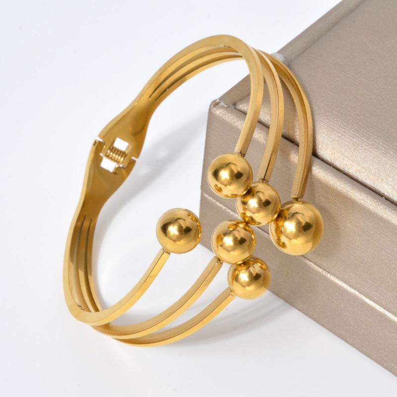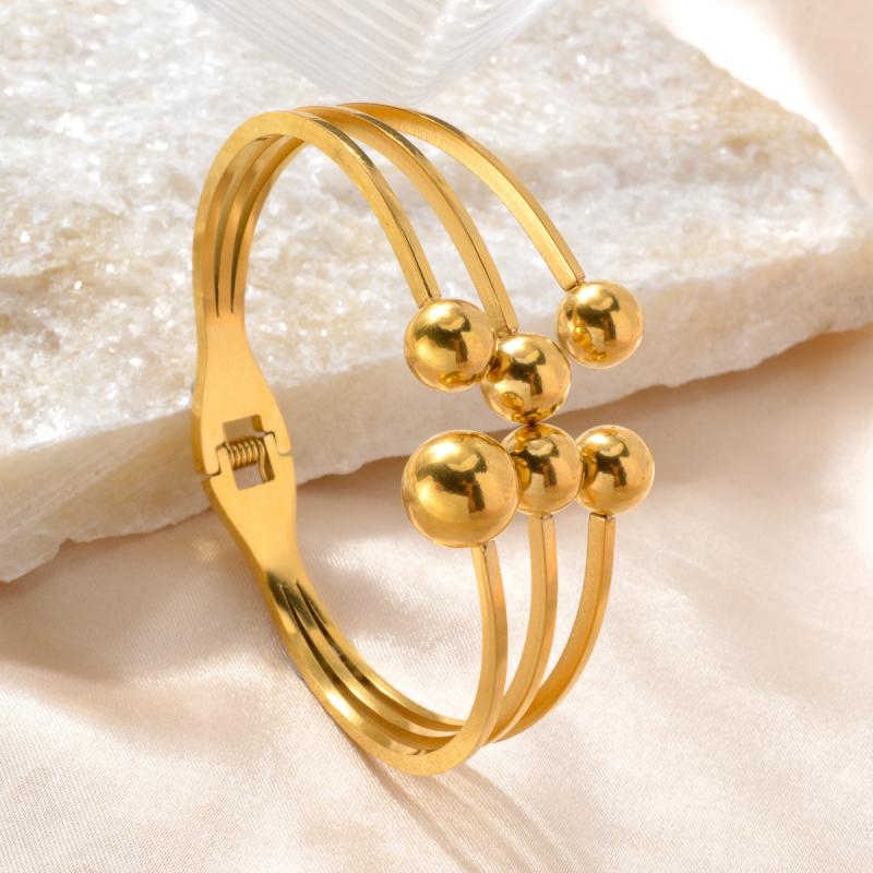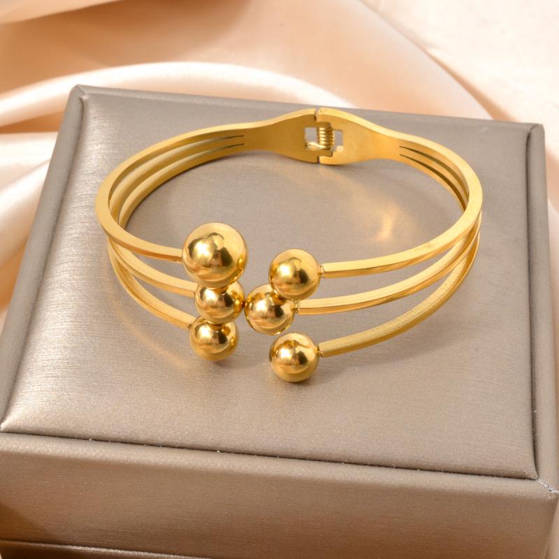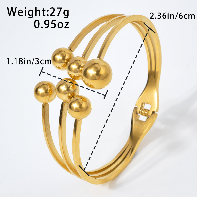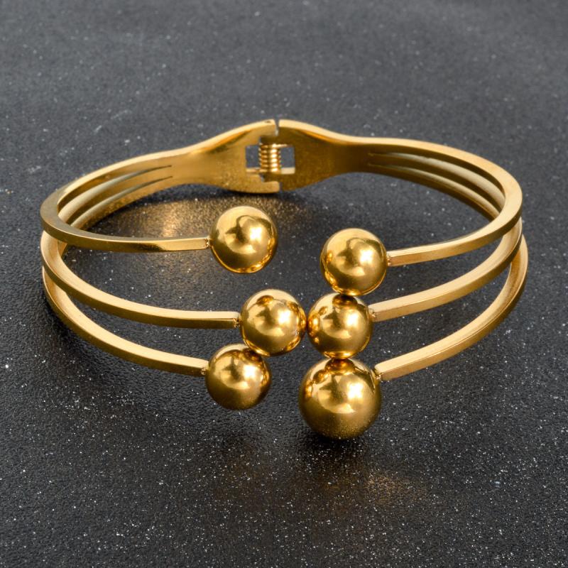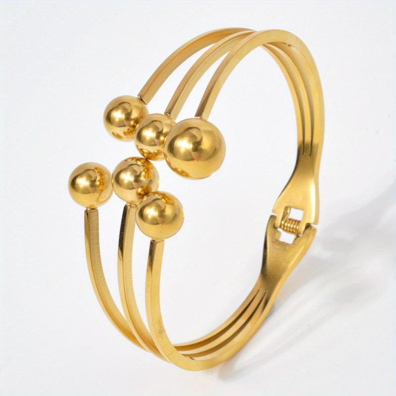 Golden Stainless Steel Cuff Bracelet with Spherical Charms