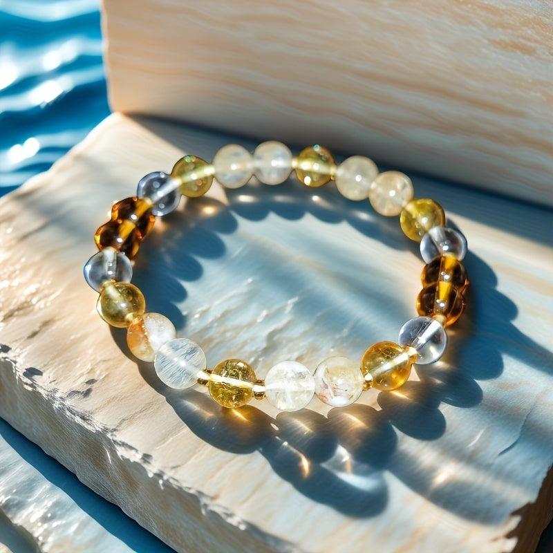 Enhance your style with this golden stone beaded bracelet, ideal for daily wear or gifting. Symbolizes wealth and prosperity, perfect for an Independence Charm Bracelet.