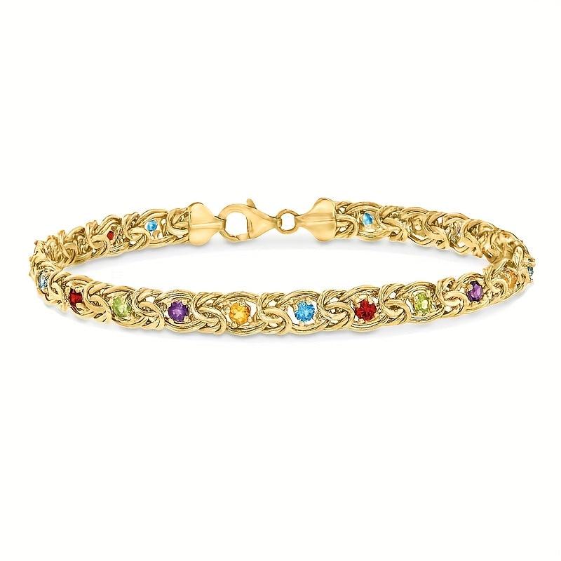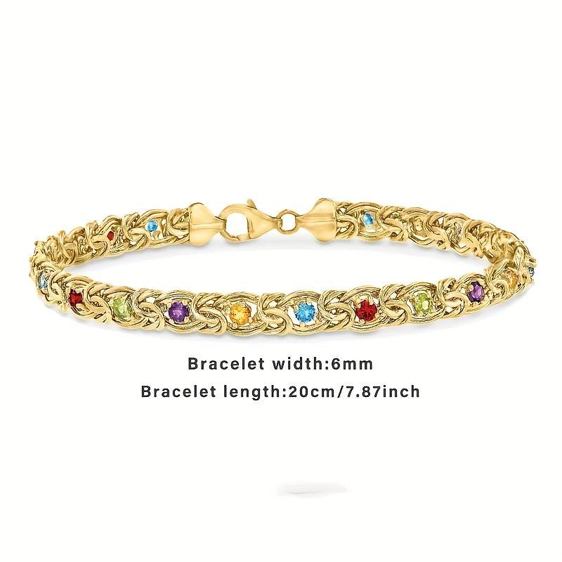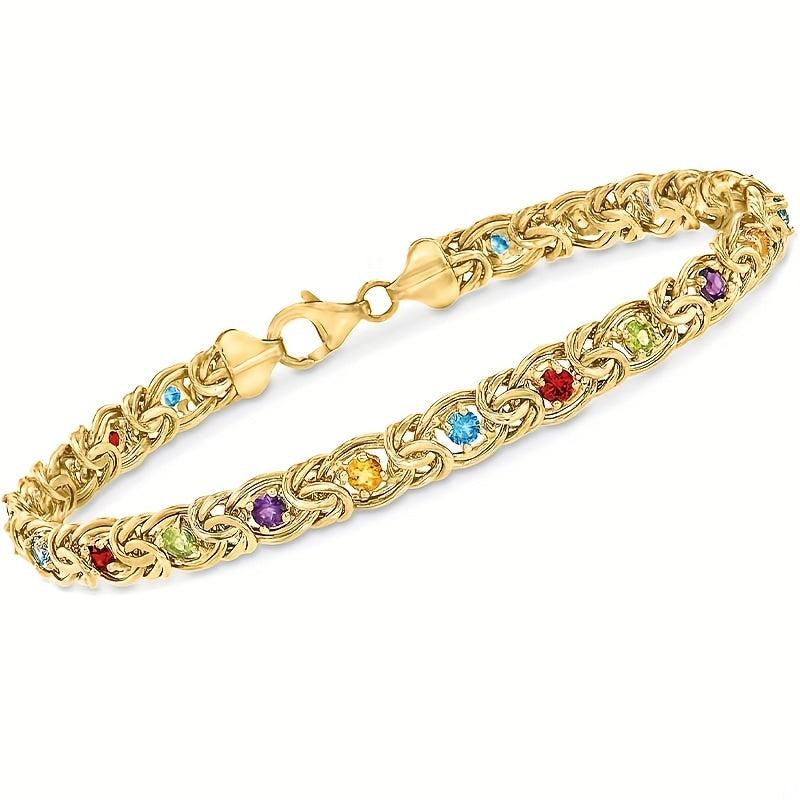 This stunning Golden Stone Byzantine bracelet showcases the timeless beauty of Byzantine style. It is a perfect gift for weddings, Mother's Day, or any special occasion. The adjustable length ensures a comfortable fit for any wrist size.