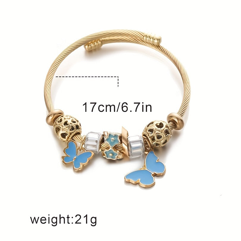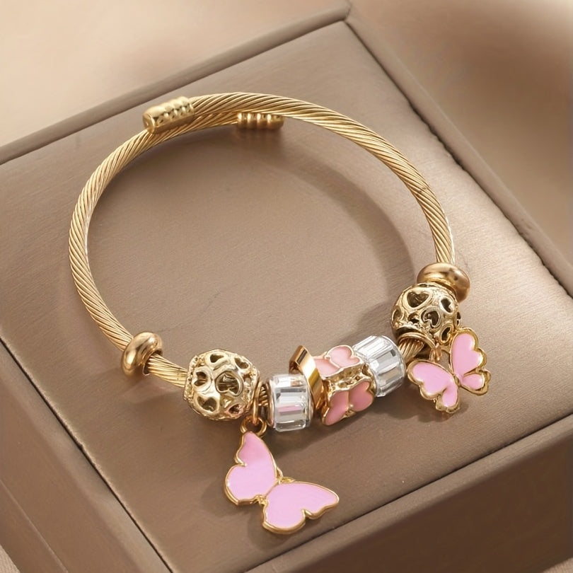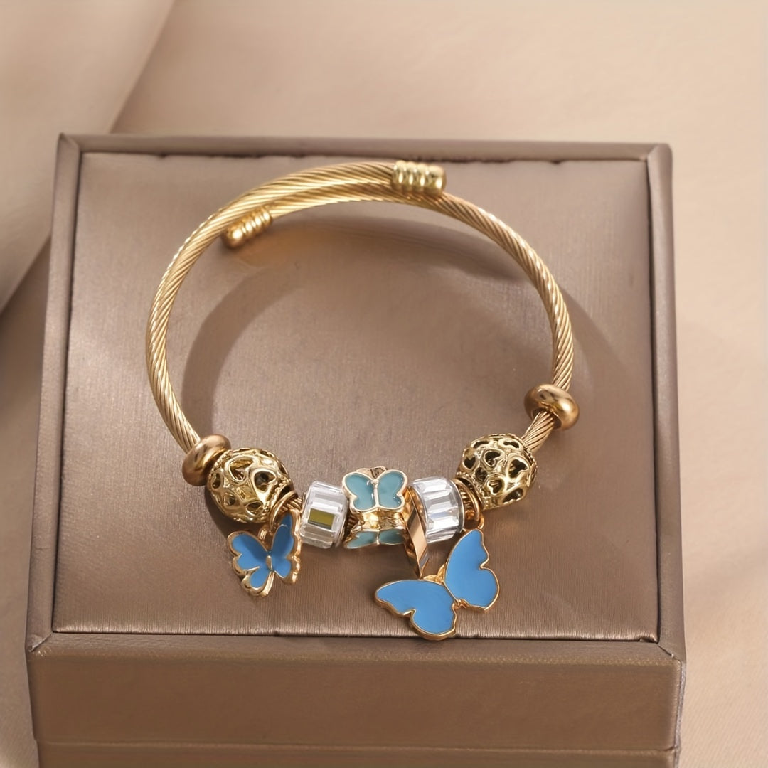 This delicate bracelet features a gradient butterfly design, crafted from high-quality golden titanium steel.