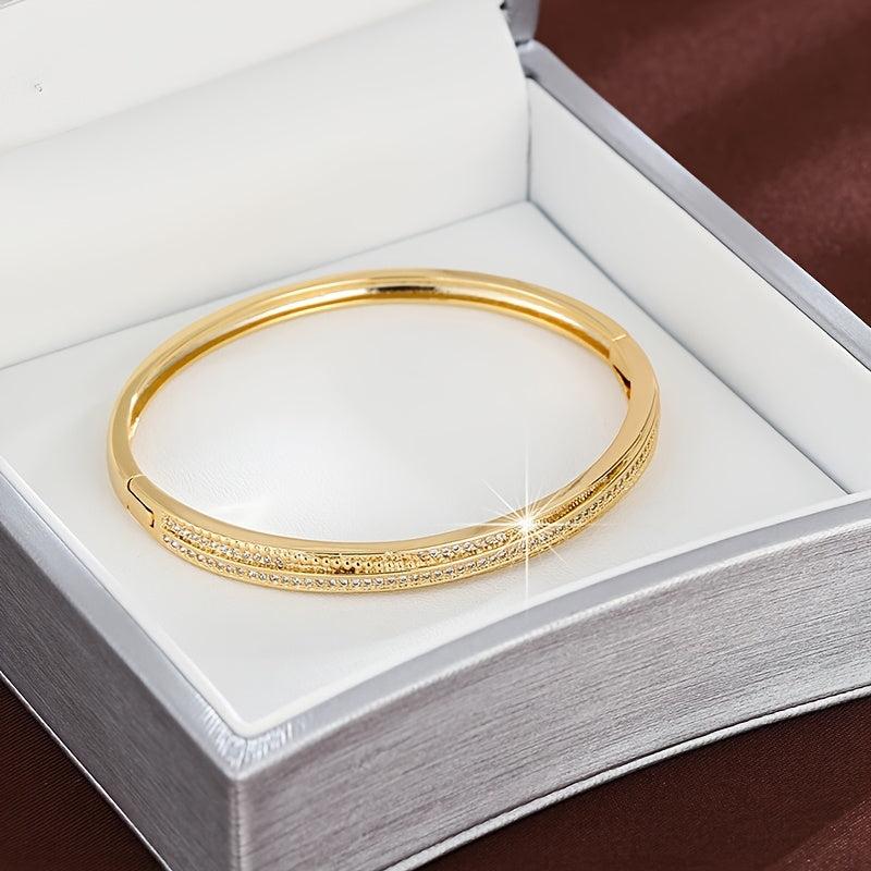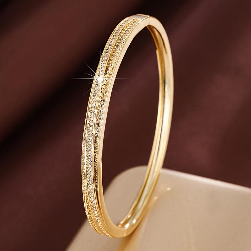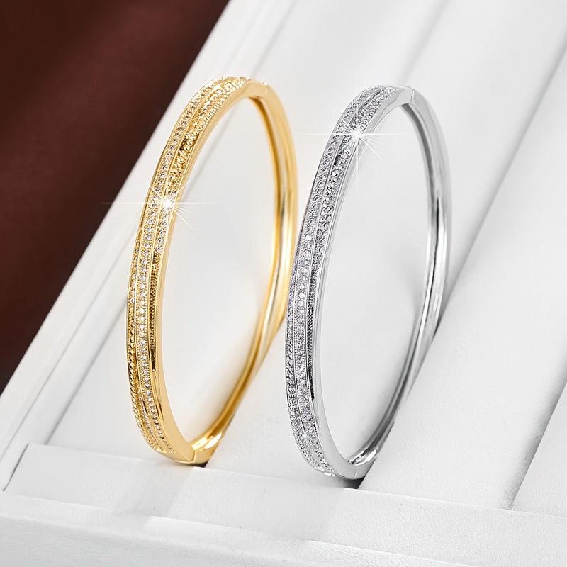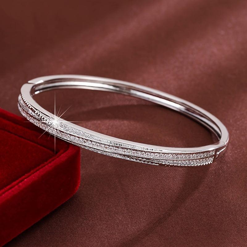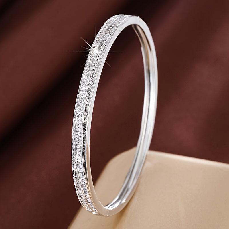 Elegant bracelet with sparkling CZ accents for daily wear or gifting. Made of copper base material.
