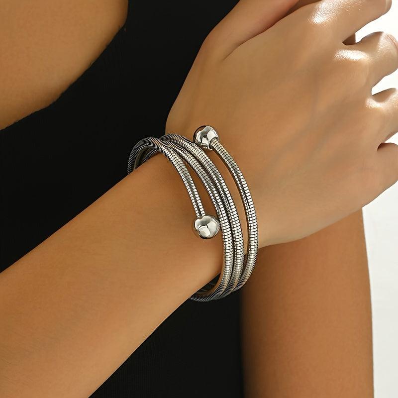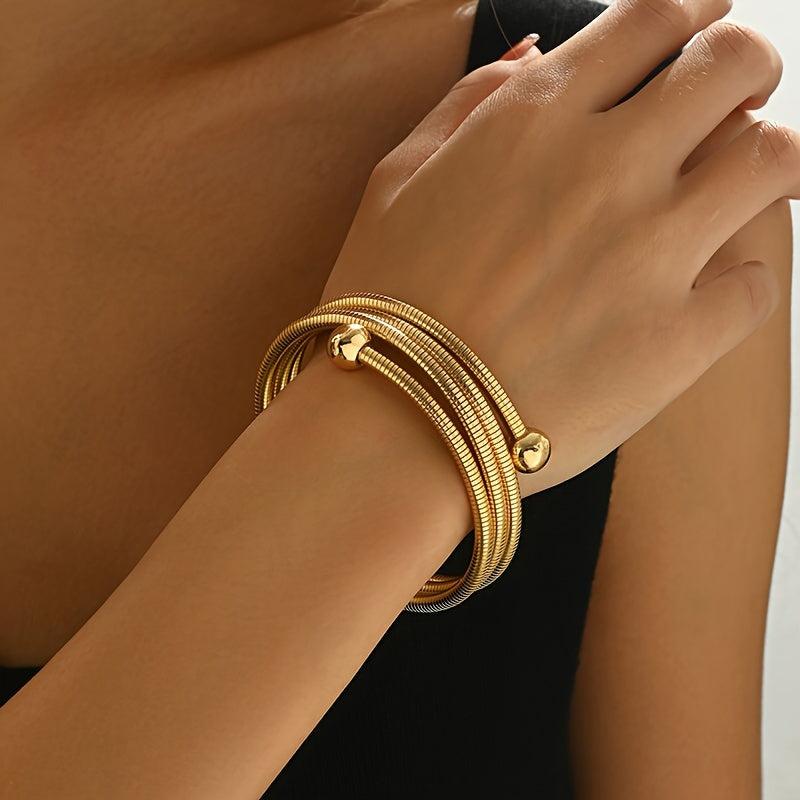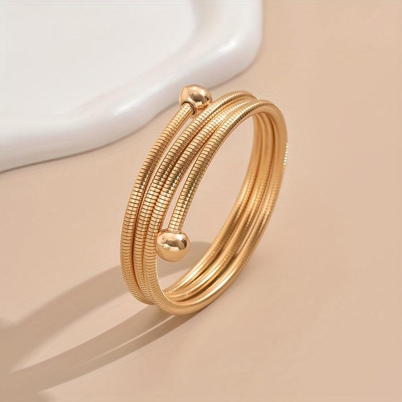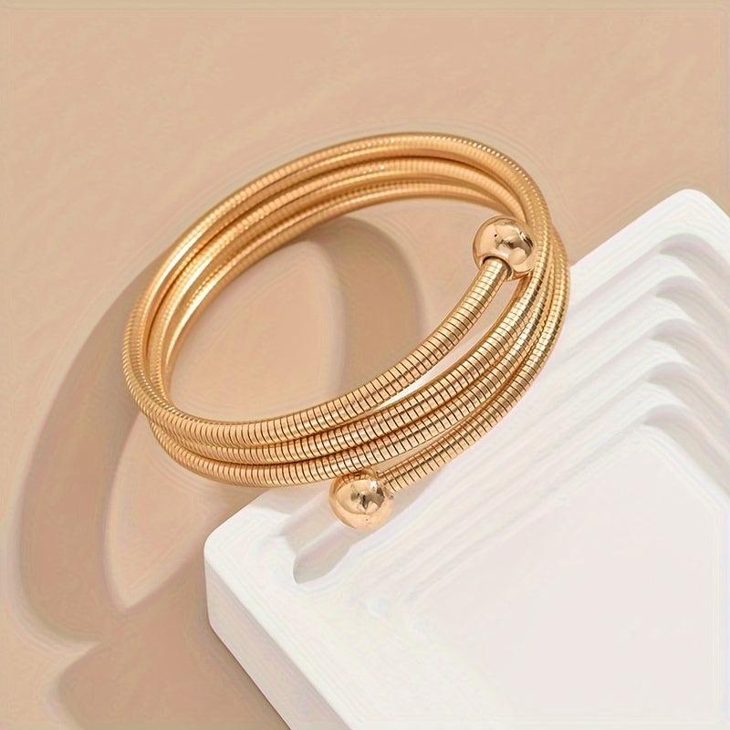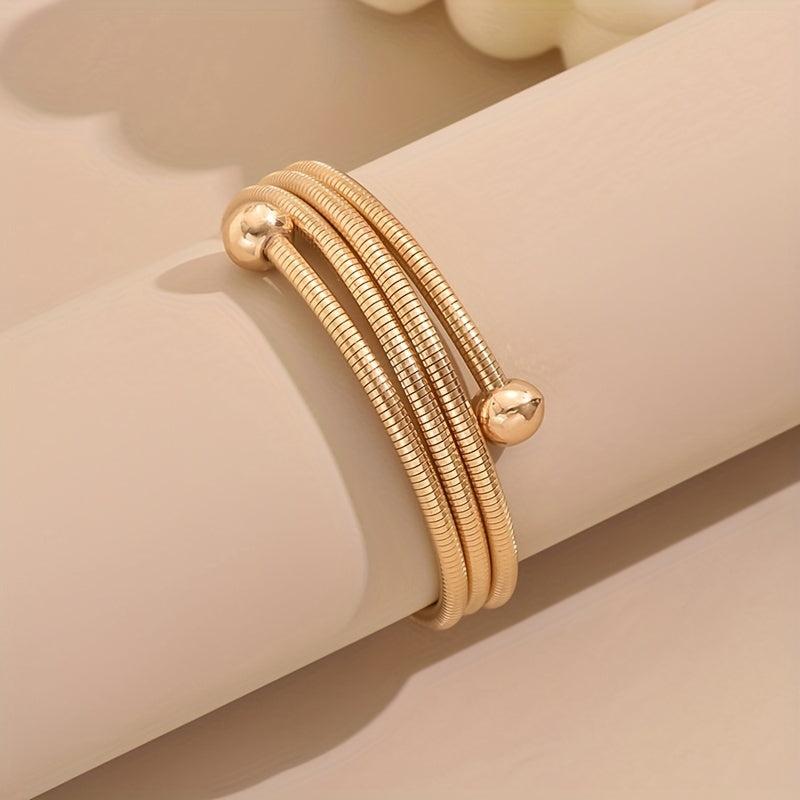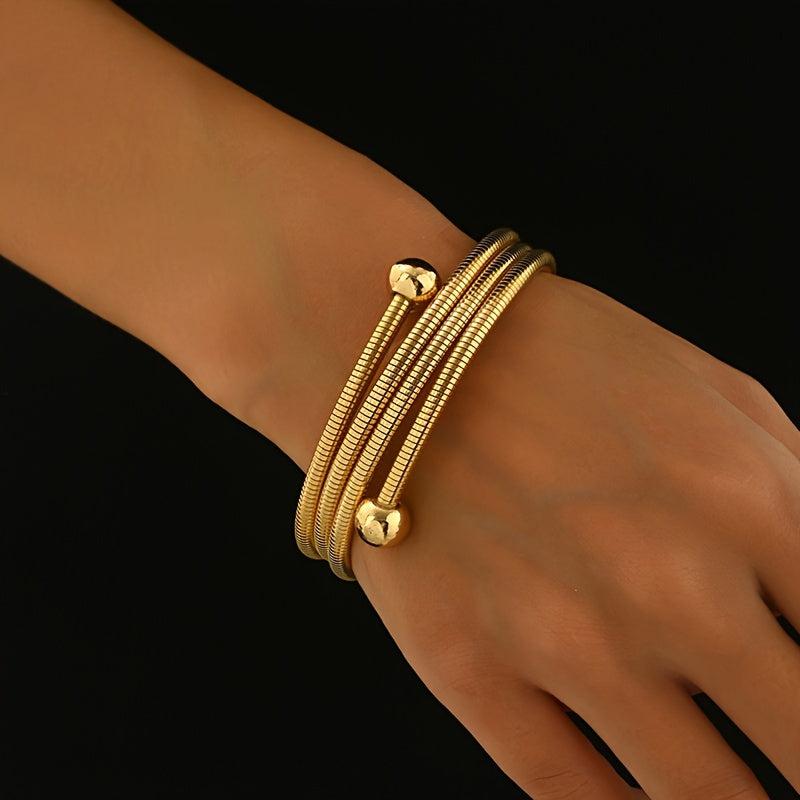 This sleek and elegant adjustable bracelet is perfect for daily wear or special occasions. The golden tone and decorative beads add a touch of style to any outfit.