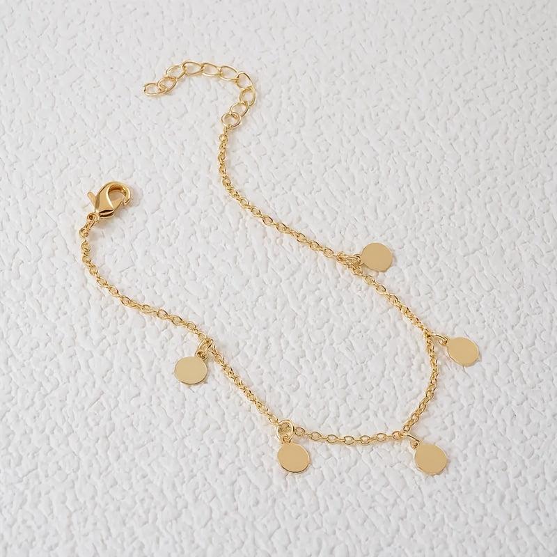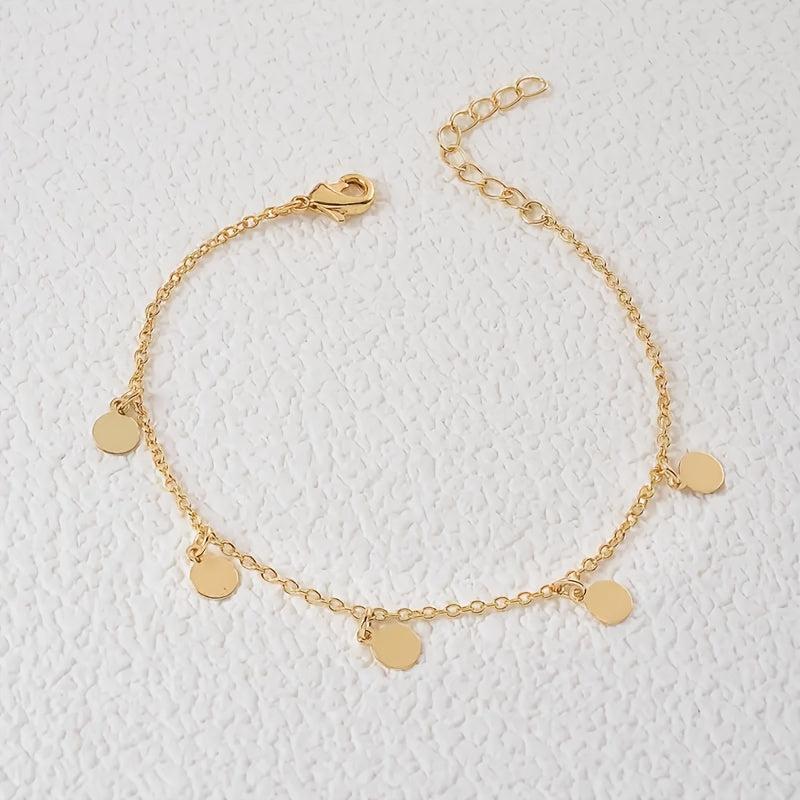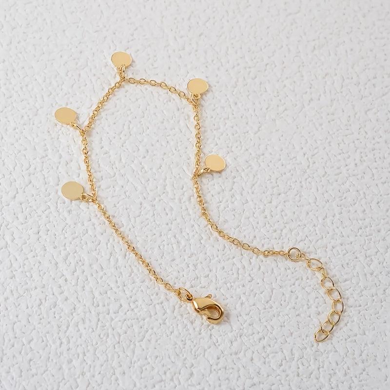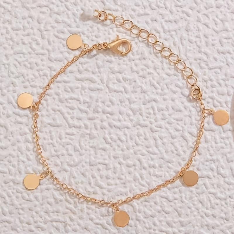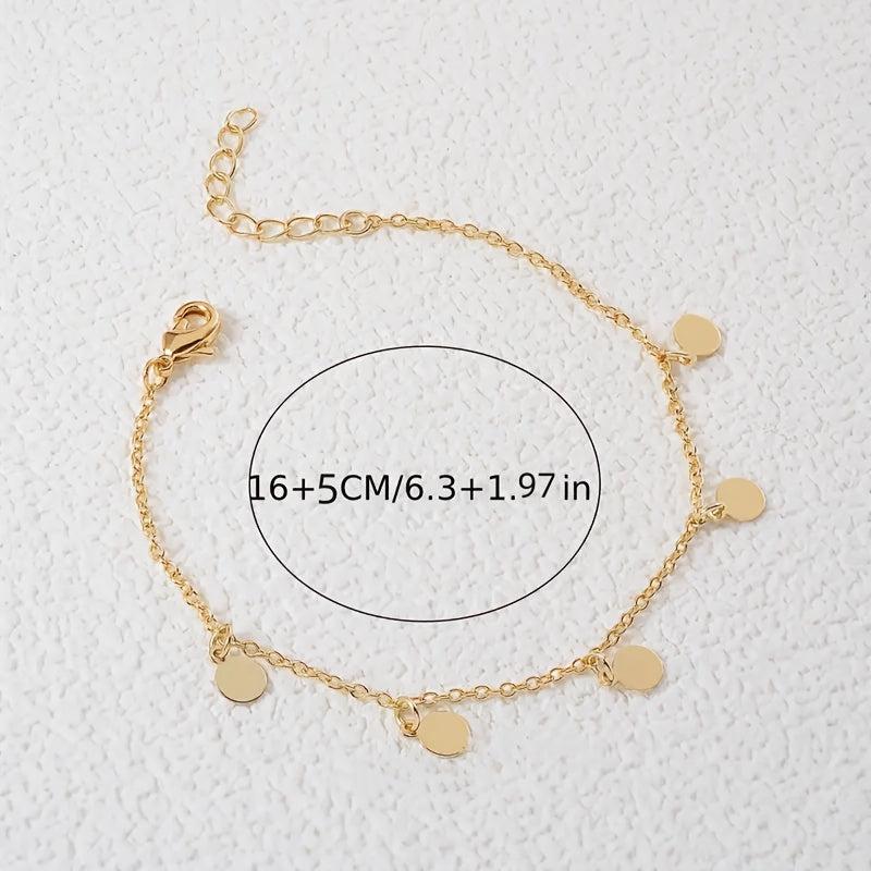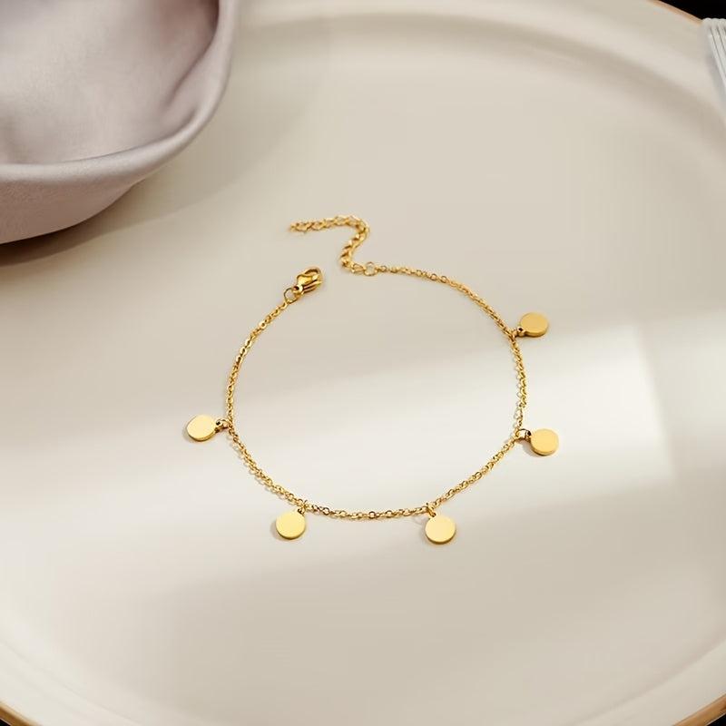 This stylish bracelet features round pendants in a golden tone, making it perfect for daily wear or holiday occasions. Made of durable stainless steel, it is a charming accessory for any outfit.