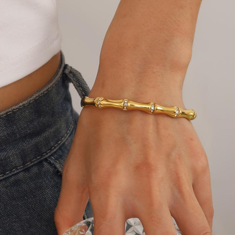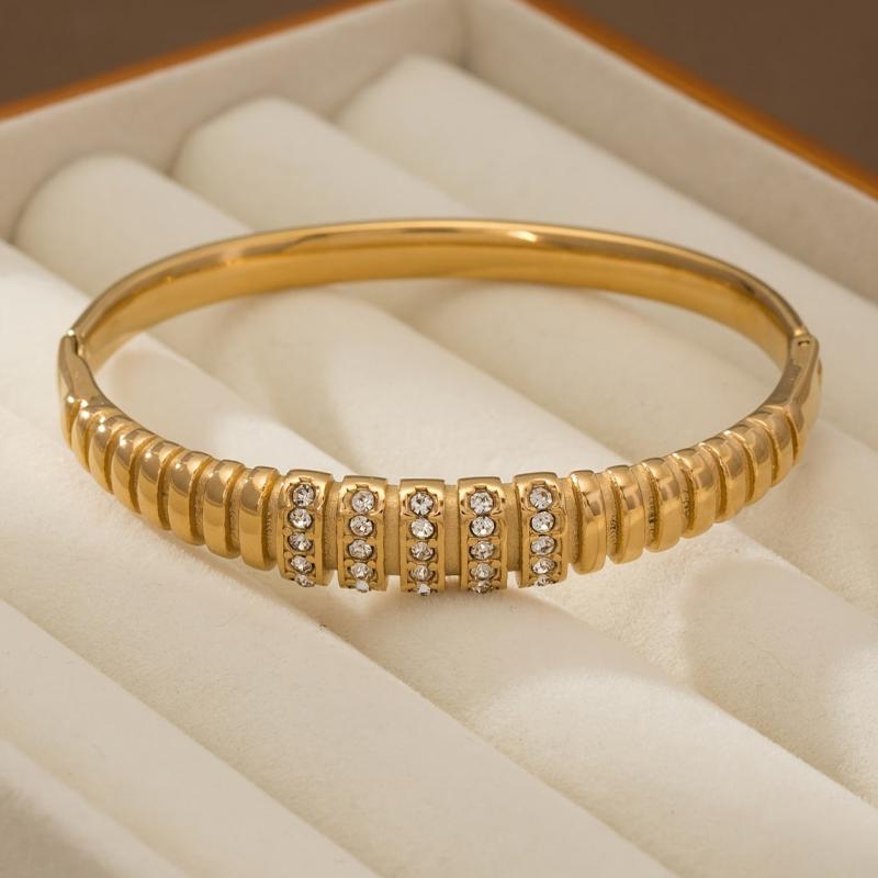This stunning stainless steel bangle features zirconia accents, perfect for bridal parties or special occasions. A beautiful gift for Valentine's Day or any celebration.