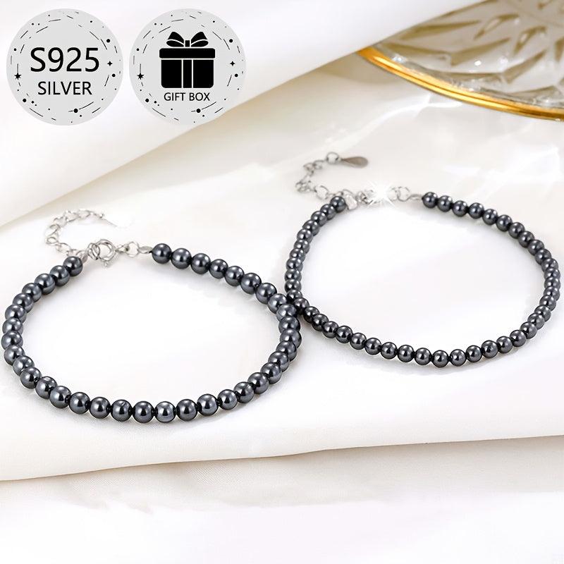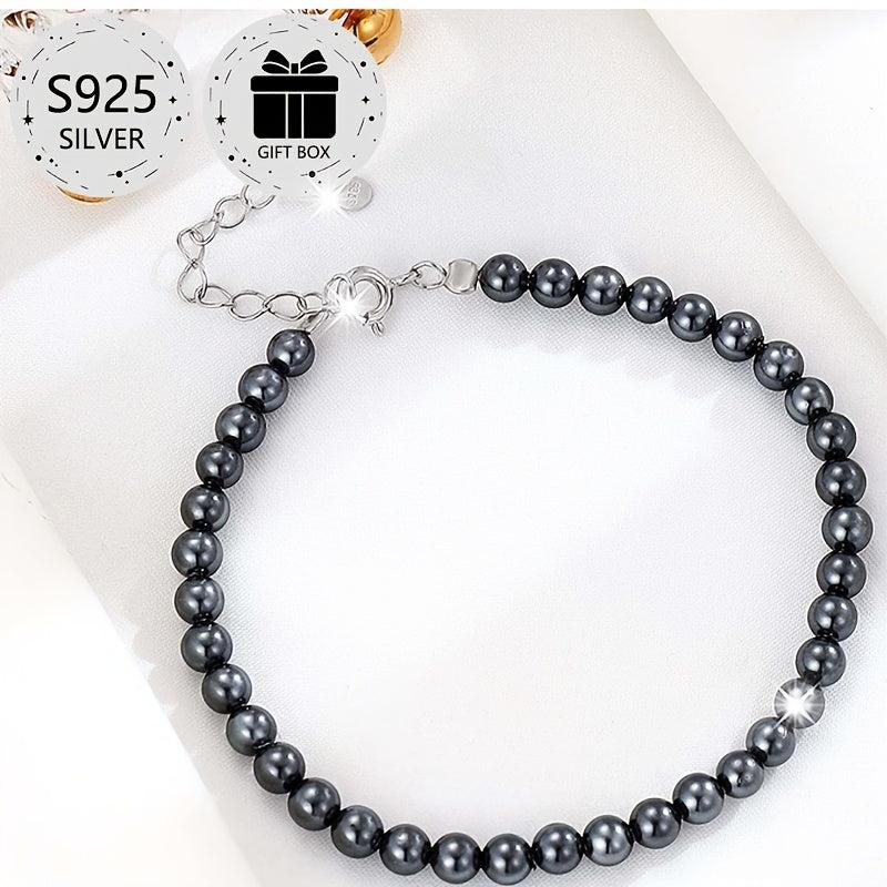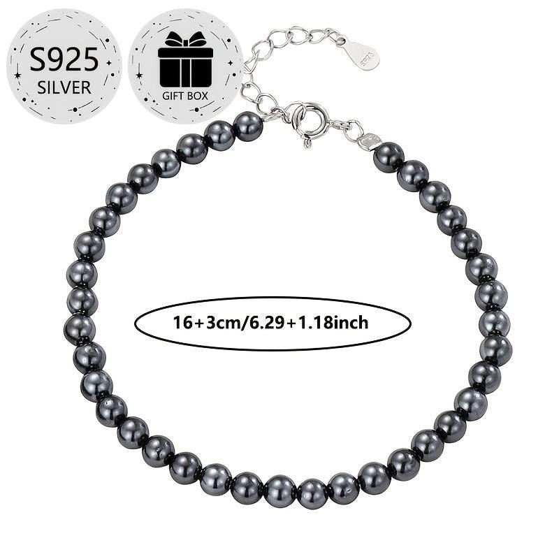 This stunning bracelet features gray shell pearls set in 925 silver, perfect for adding an ethnic touch to any outfit. Makes a great gift for friends.