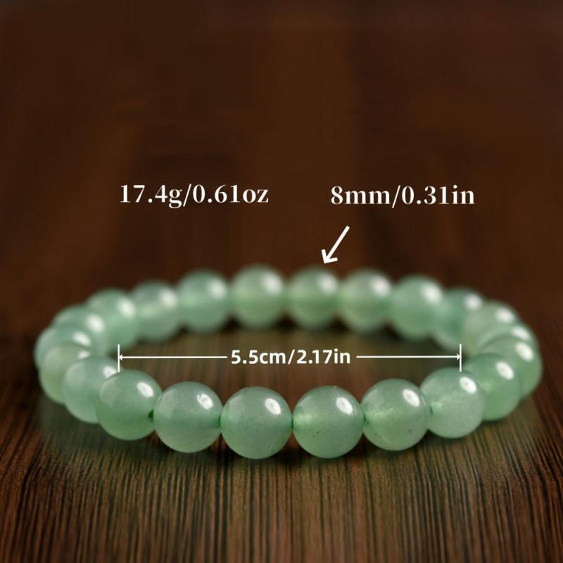 Elegant green semi precious bead bracelet with synthetic jade stones, perfect for holiday gifting, parties, and vacations. Stretchable design for easy wearing.
