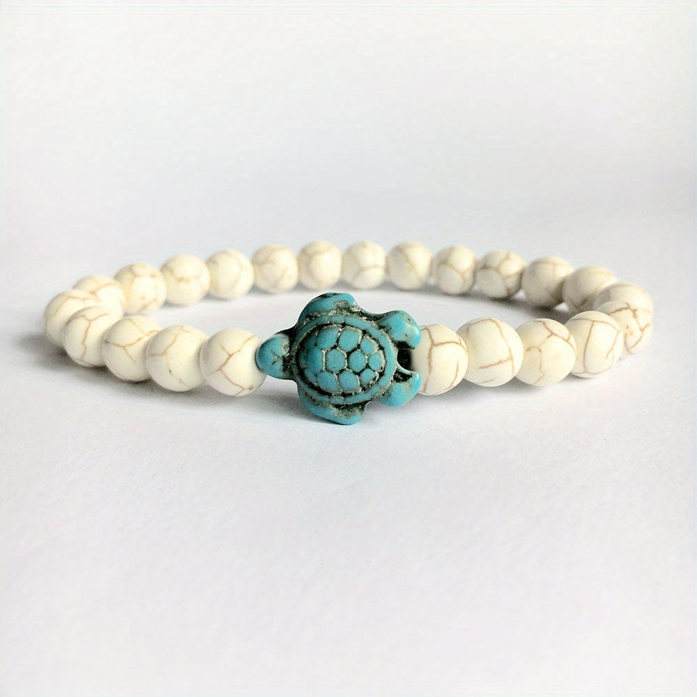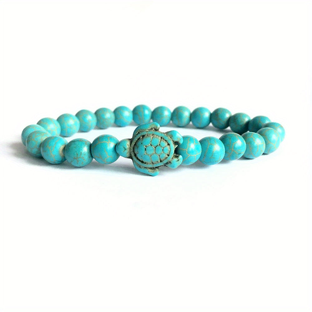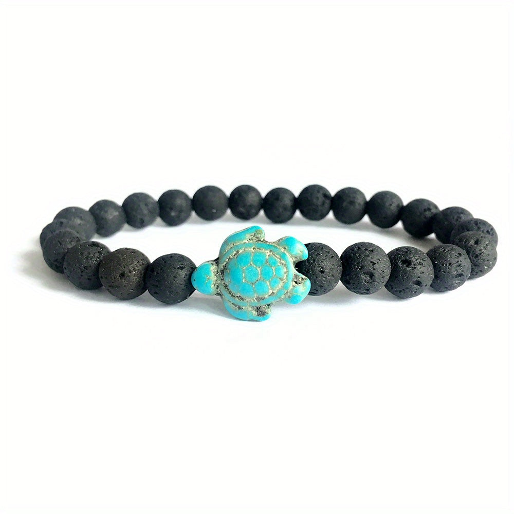 Enhance your style with this green turquoise turtle stone bracelet crafted from volcanic stone and turquoise. A perfect accessory for men.