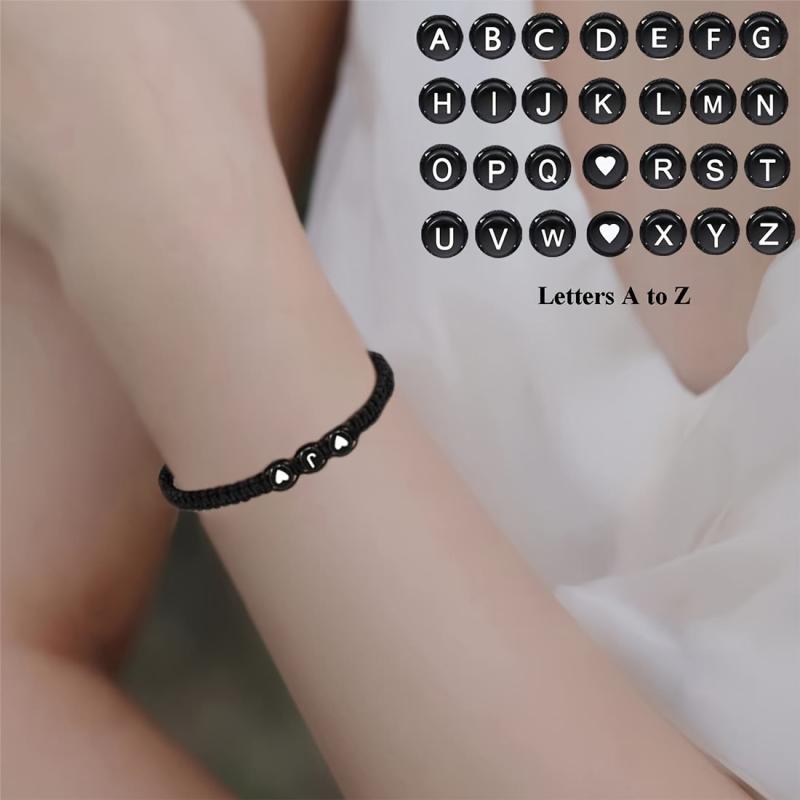 Set of 26 English letter bracelets, perfect for partners, mothers, daughters, graduation season, and classmates. Hand woven with care and unique craftsmanship.